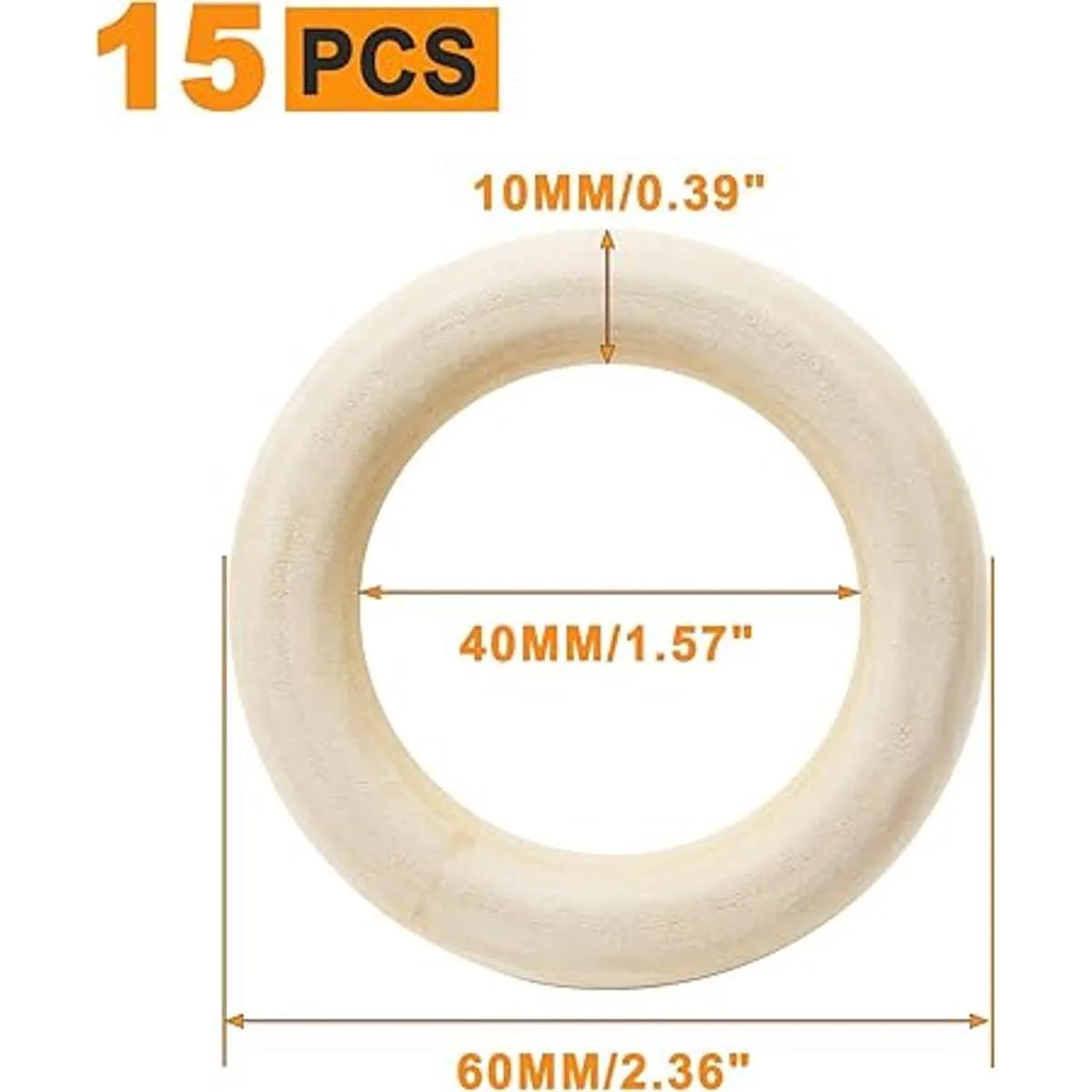 Uenhoy 15 anillos de madera natural de 2.362 in, anillos de madera sin terminar para manualidades, anillos de macramé, fabricación de joyas