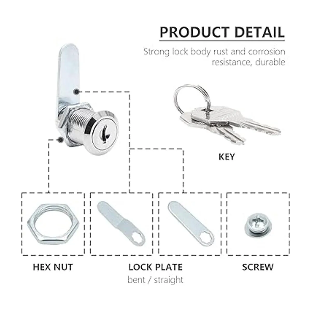 Material de alta calidad: el candado de leva para armario está hecho de aleación de zinc de alta calidad, cromado, resistente a la corrosión, resistente al desgaste, resistente y duradero para su uso.