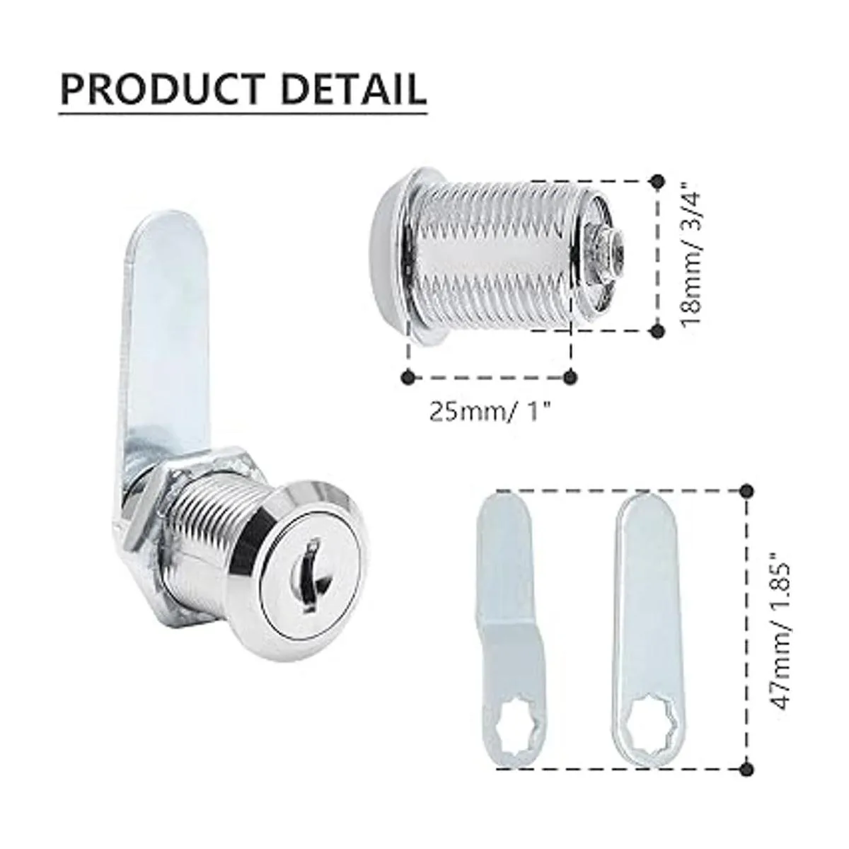 Bloqueo universal de leva: con longitud de cilindro de 1 pulgada, el candado del archivador puede adaptarse a un grosor máximo de panel de 0.79 pulgadas 0.787 in. El diámetro de la cerradura es de 3/4 pulgadas, que es un bloqueo de leva de tamaño estándar, fácil de instalar.