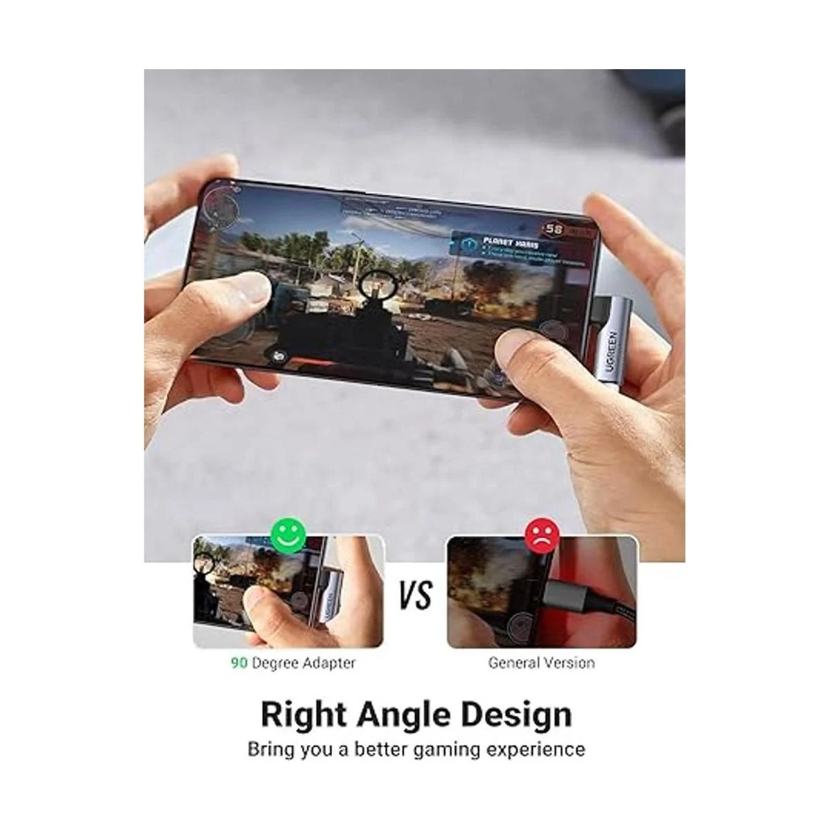 Más durabilidad mejorada: adaptador de conector USB C UGREEN con diseño ergonómico doblado en ángulo de 90, puede ayudar a evitar que tus cables se dañen. La carcasa de aluminio resiste la oxidación y la corrosión. Puedes poner el teléfono horizontal o verticalmente y el conector jack no se interpone en el camino
