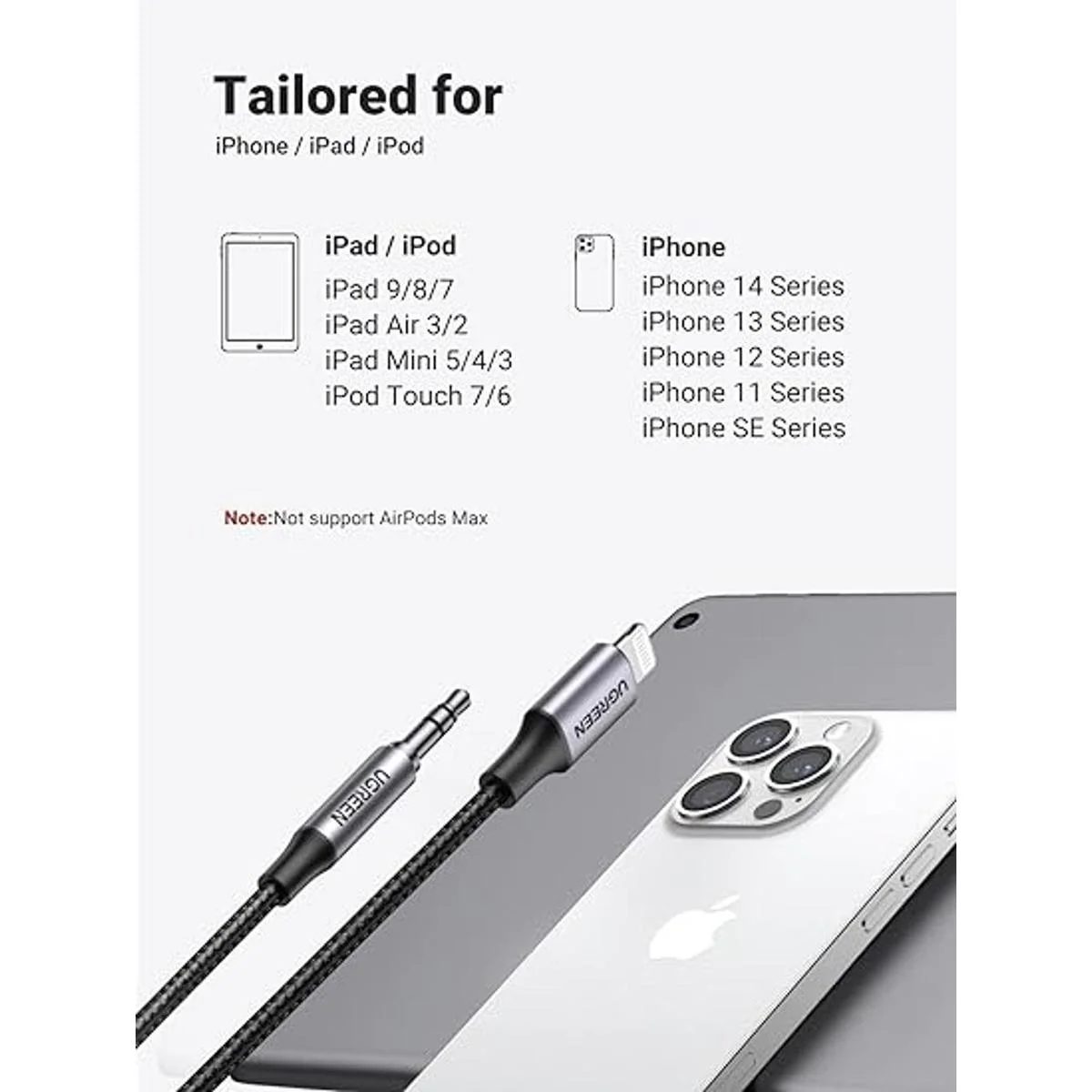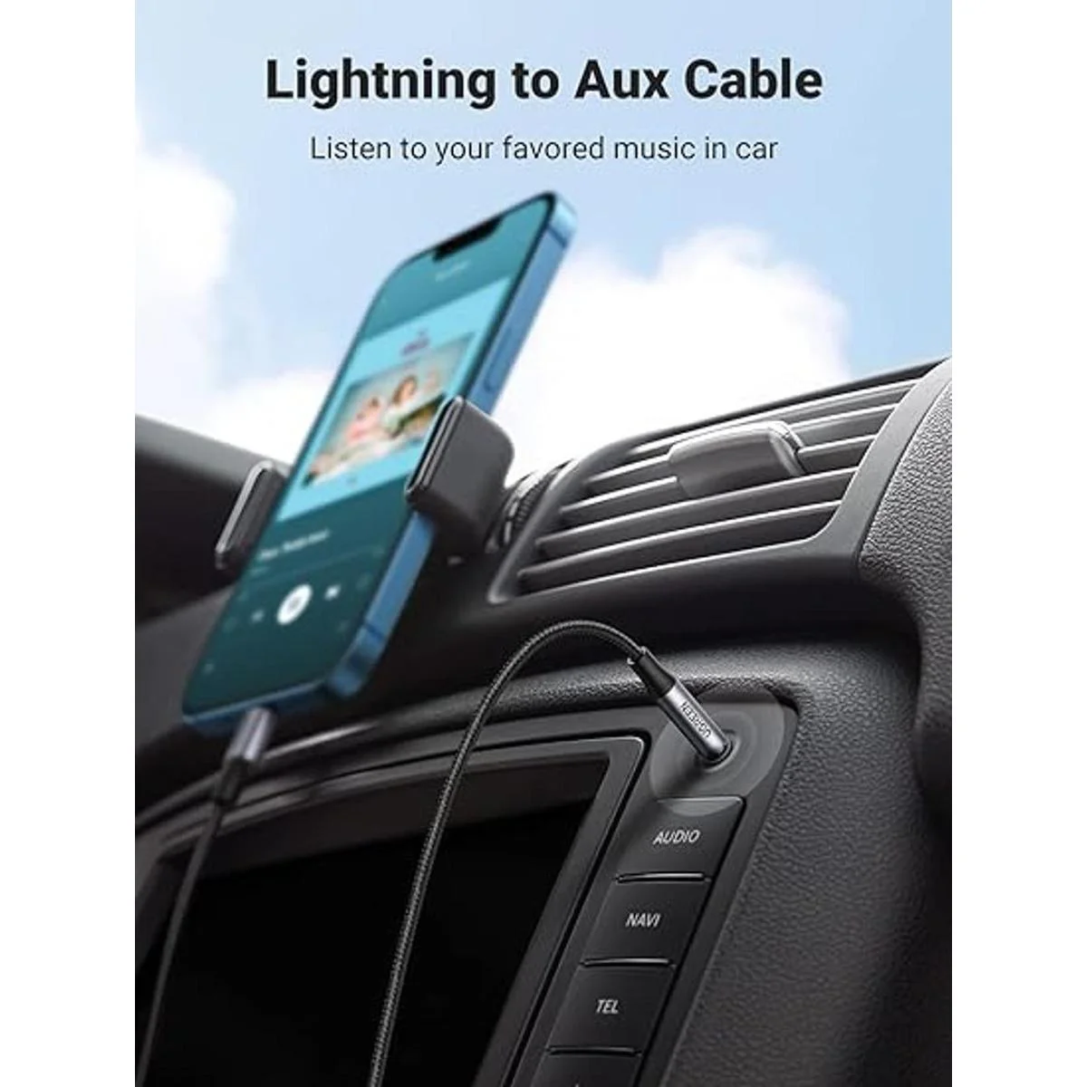 UGREEN Cable auxiliar para iPhone, cable auxiliar a Lightning para adaptador de automóvil, certificado MFi Lightning de 0.138 in, conector de audio macho compatible con iPhone 14 Pro Max13, 12, 11 Pro Max12, 11 XR SE8 Plus, 3.3 pies