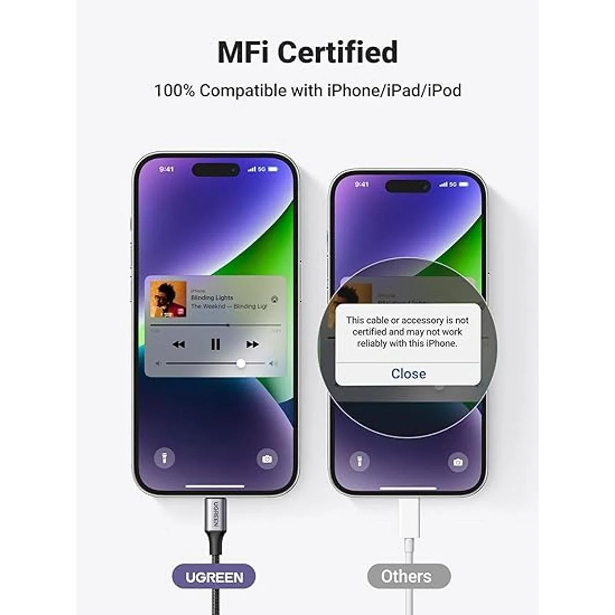 Certificado Apple MFi: el cable auxiliar UGREEN para iPhone Lightning a cables de audio de 0.138 in está certificado por Apple para cumplir con los requisitos rígidos del iPhone y garantizar una conexión completa y segura con tus dispositivos Apple
