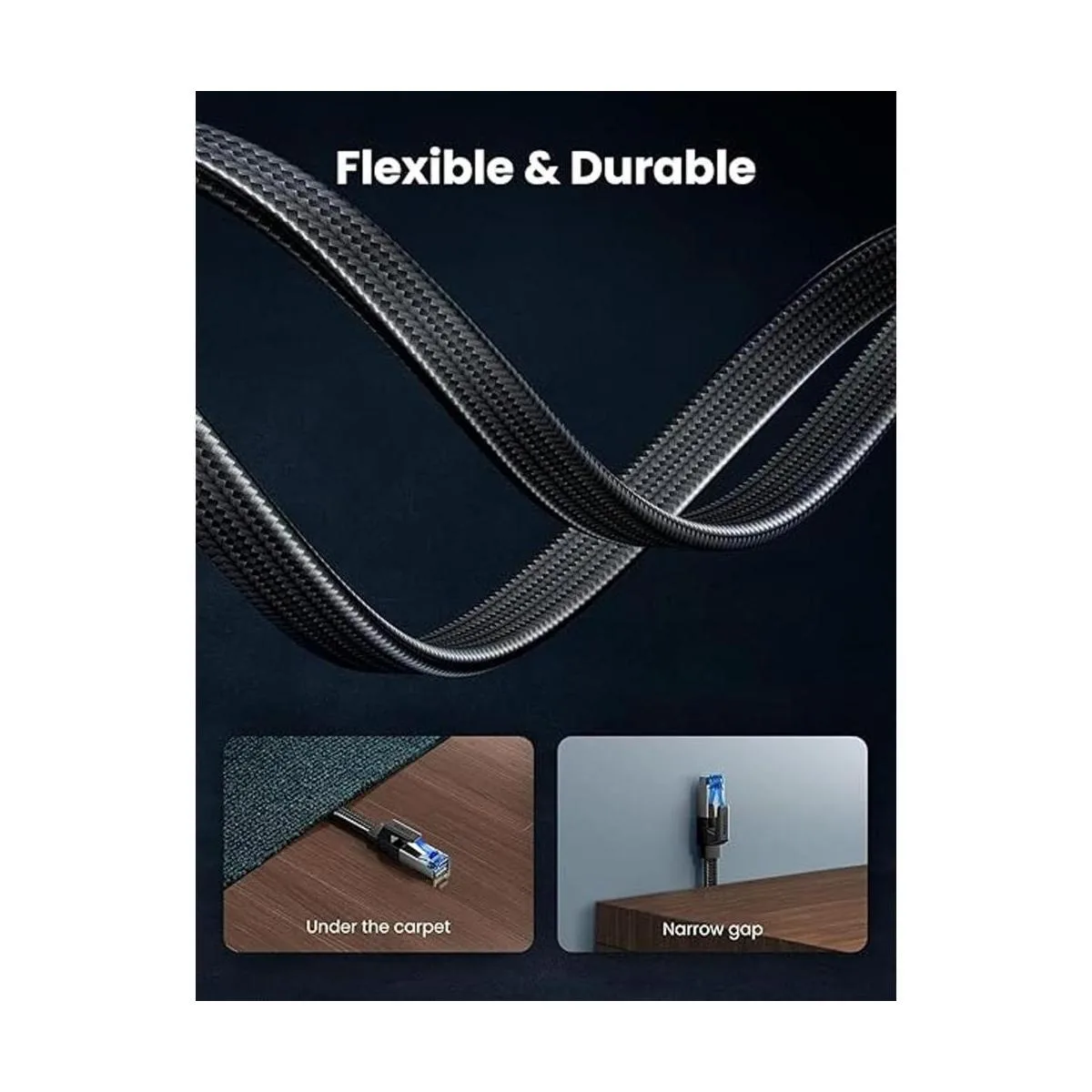 UGREEN Cable Ethernet Cat 8 de 10 pies, plano de alta velocidad de 40 Gbps 2000 MHz Cable de red trenzado de 26 AWG RJ45 blindado para interiores LAN compatibles con PC de juegos, PS5 Xbox módem Router de 10 pies