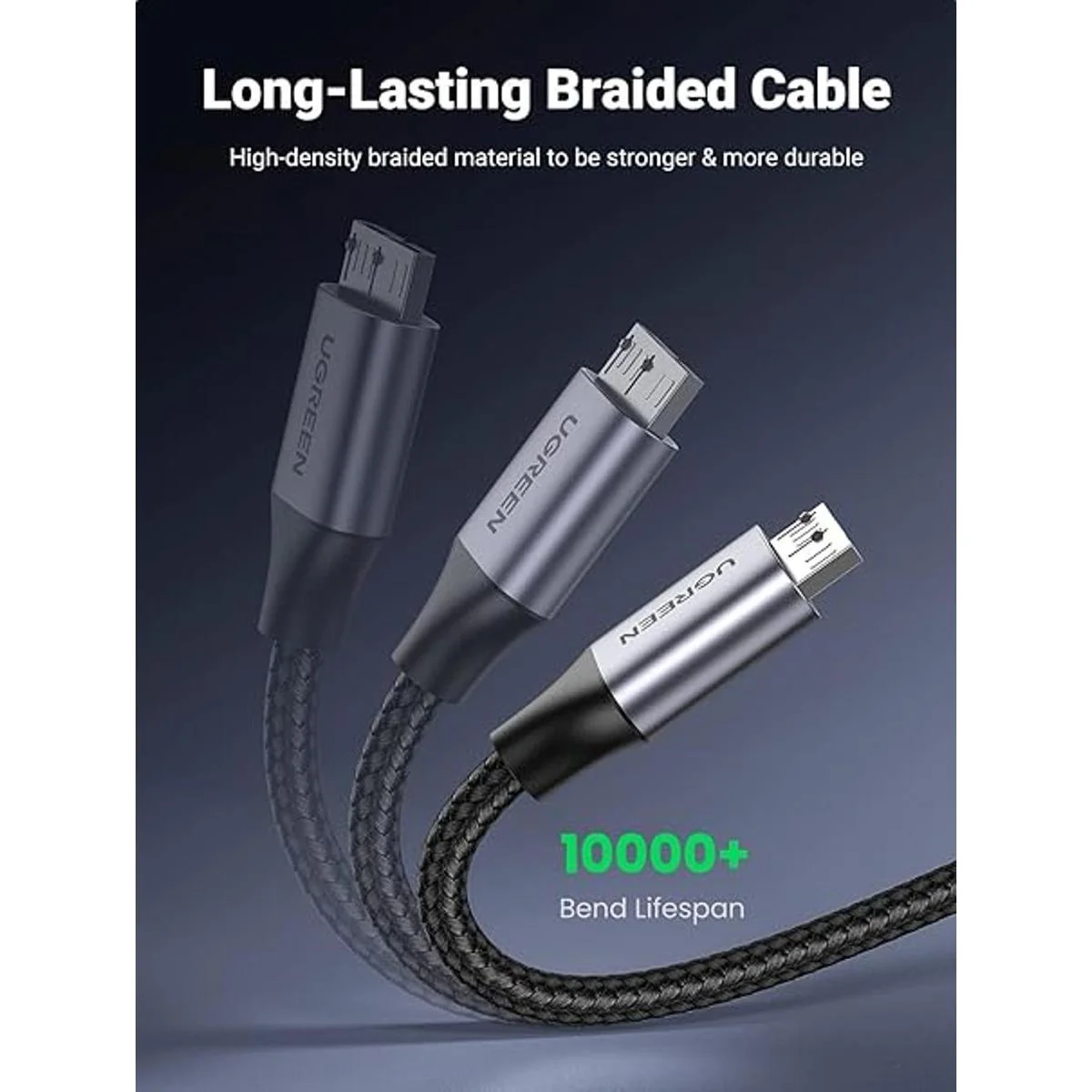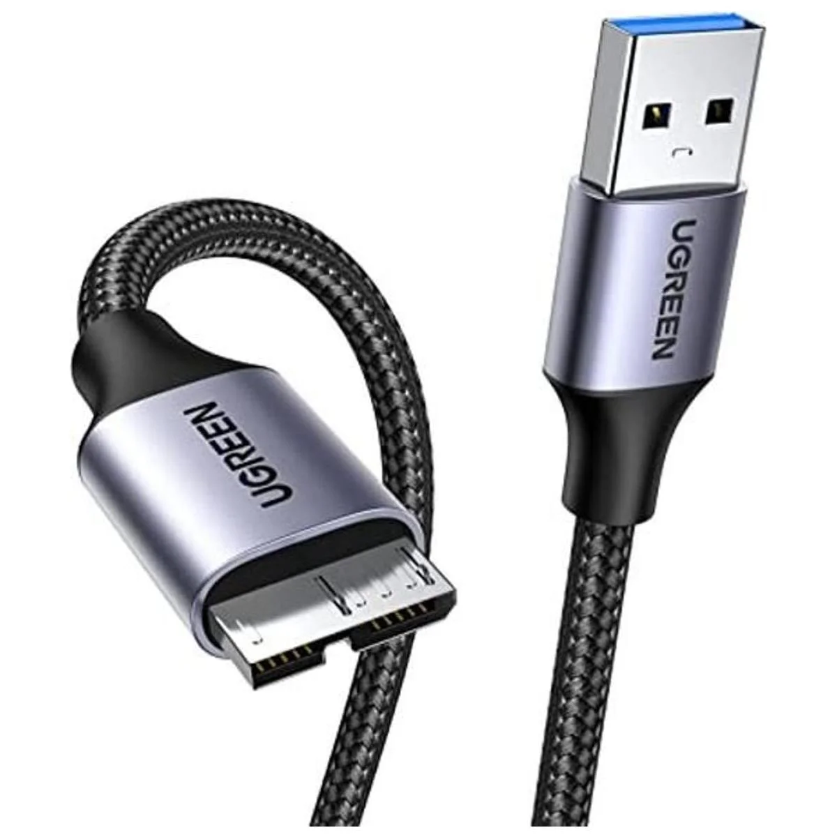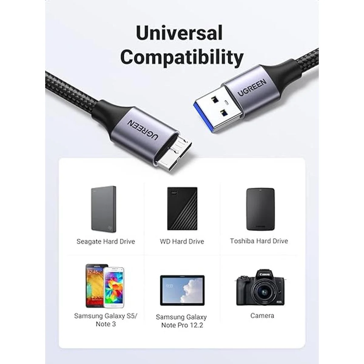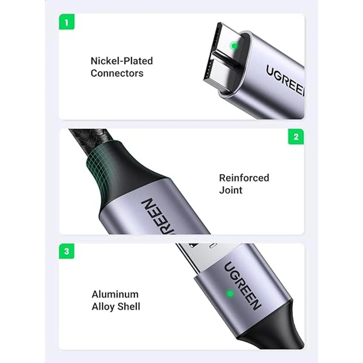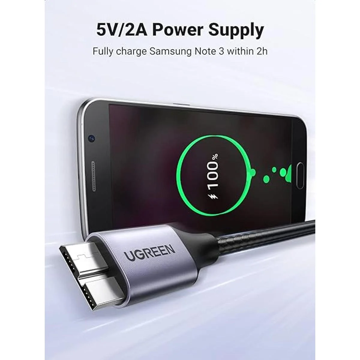 UGREEN Cable micro USB 3.0, cable USB 3.0 A a Micro B, cable de nailon trenzado, cable de disco duro externo compatible con Samsung Galaxy S5, Note 3Pro 12.2, Western Digital, Toshiba, My Passport, etc. 5.9 ft