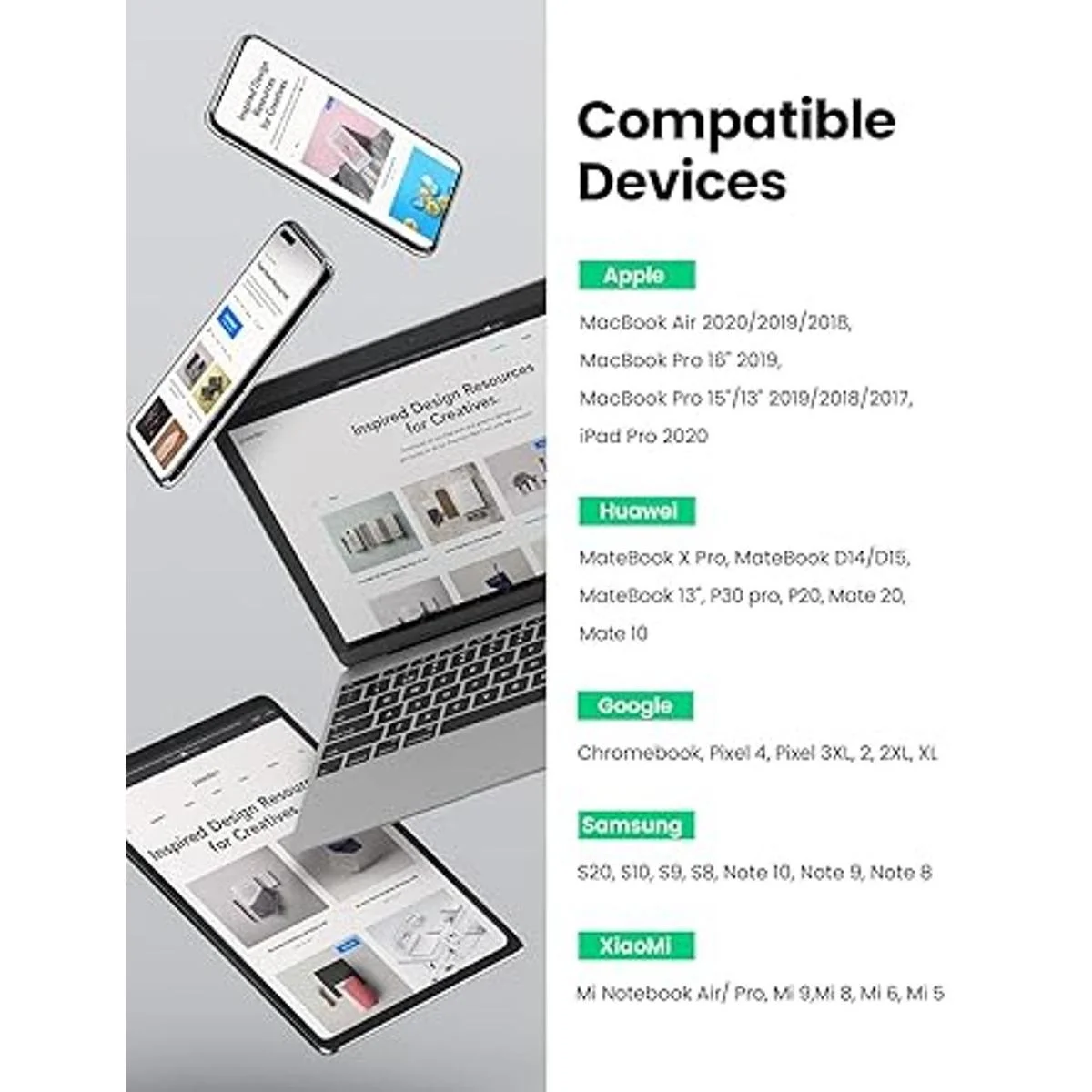 Amplia compatibilidad: a diferencia del cable USB C más del mercado incapaz de cargar dispositivos de alta potencia, el cable UGREEN tipo C a tipo C puede ser compatible perfectamente con portátiles MacBook Pro 2021, etc., teléfonos celulares Samsung S21, Google Pixel, LG, etc. , tabletas iPad Pro, etc. , interruptor y más. Adecuado para cualquier funda de teléfono