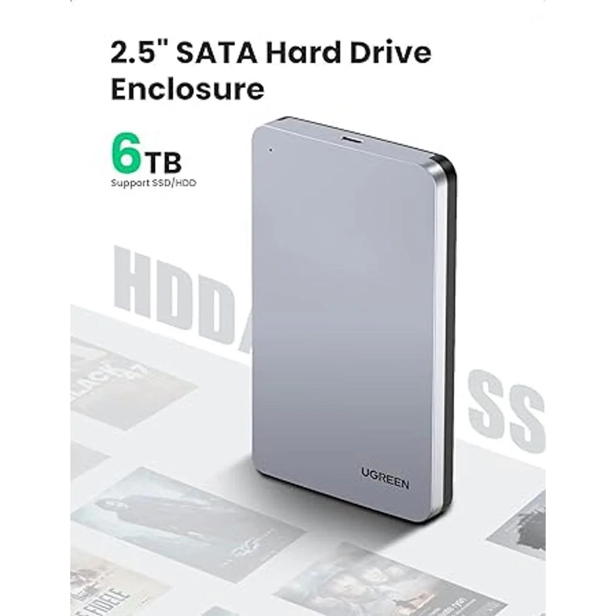 Carcasa de disco duro USB C: la carcasa de disco duro UGREEN conecta fácilmente un SSD SATA o HDD de 2.5 pulgadas a tu computadora para ampliar el almacenamiento, actualizar el sistema, copiar de seguridad de archivos, recuperar y recuperar datos, y transferir datos. Obtén protección contra arañazos y portabilidad para tu disco duro externo.