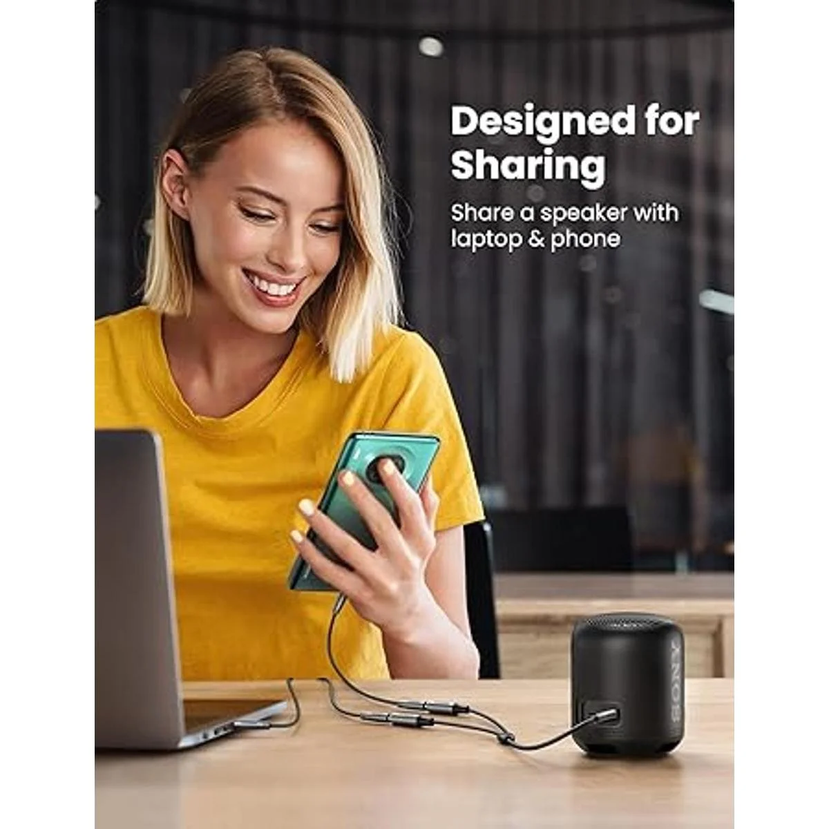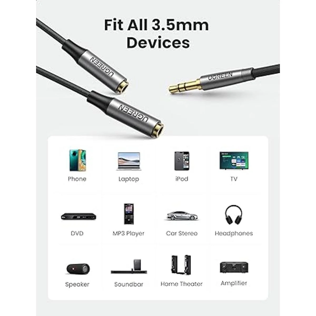 Divisor auxiliar bidireccional: el divisor de audio de 0.138 in también se puede utilizar para conectar un teléfono y portátil al mismo auriculares/altavoz. El divisor auxiliar de 2 vías UGREEN es perfecto para compartir un auricular/altavoz/barra de sonido con dos dispositivos.