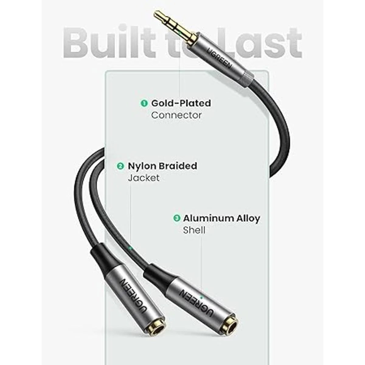 UGREEN Divisor de auriculares de 0.138 in de nailon trenzado auxiliar divisor 2 hembra a 1 macho, adaptador de auriculares dual estéreo compatible con MacBook iPad, PC, tableta, portátil, TV, teléfono, PS4