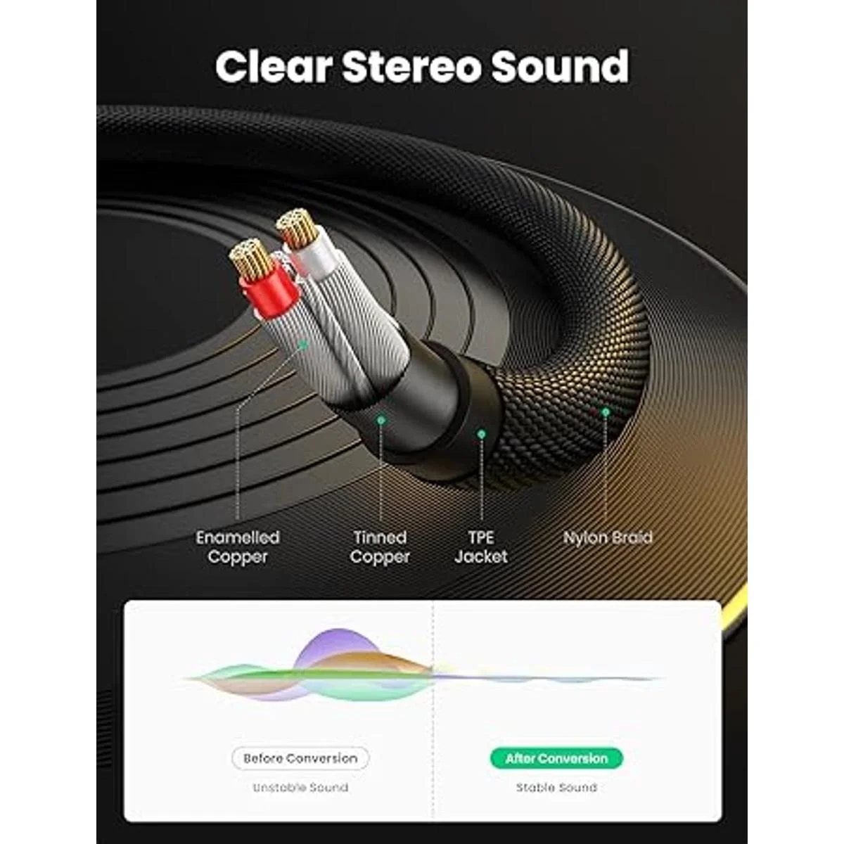 Sonido estéreo excepcional: el divisor de conector de auriculares UGREEN transmite audio estéreo a ambos puertos auxiliares hembra. El conector doble para auriculares combina conductores de núcleo de cobre esmaltado y blindajes robustos para proteger la señal de audio contra RF, EM y interferencias de bucle de tierra durante la transmisión y asegurar un sonido estéreo sin disminuir.