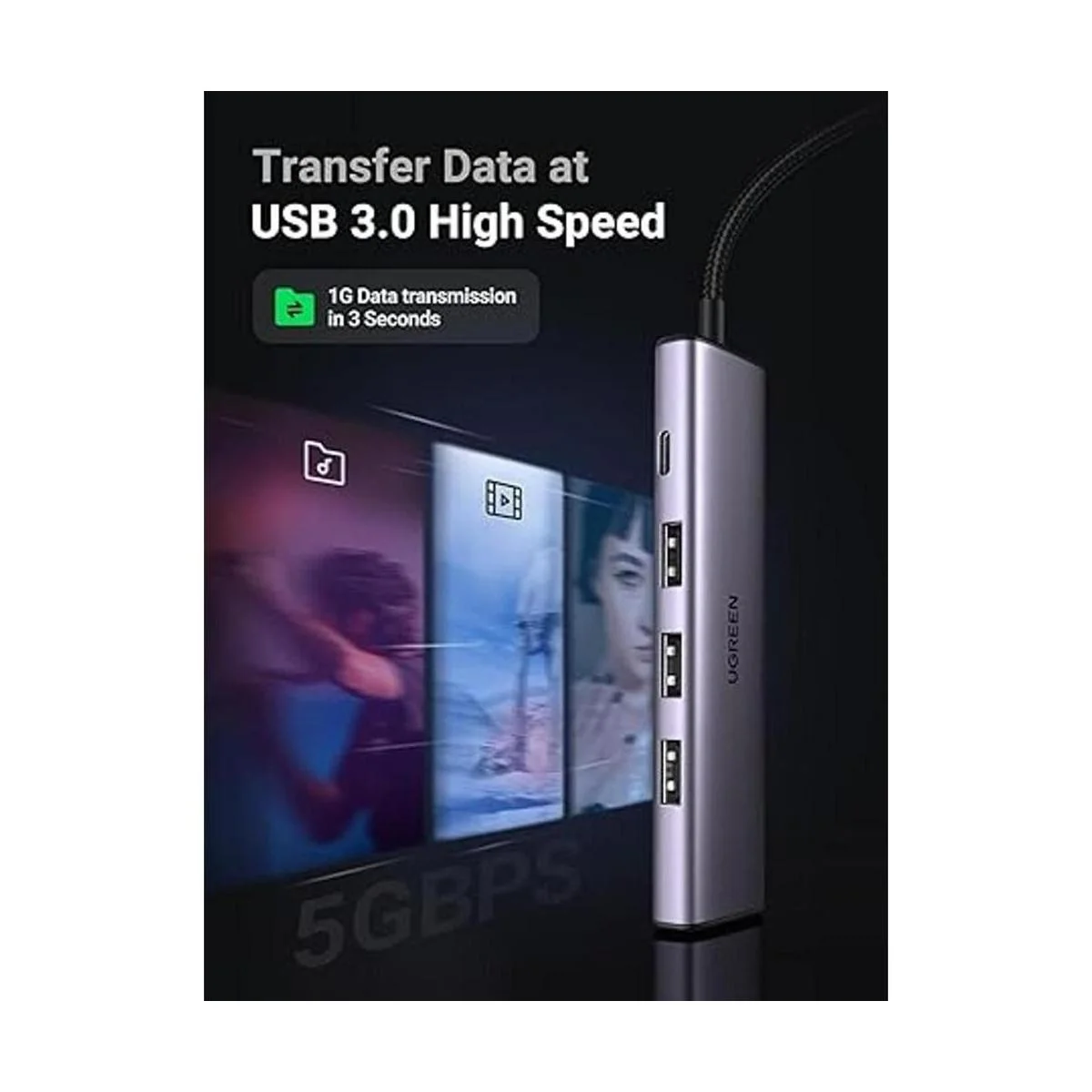 UGREEN Hub USB, Hub USB 3.0 de aluminio de 4 puertos con salida de soporte alimentada para equipos de alta potencia, divisor de puerto USB para laptop, iMac, MacBook, Surface Pro, Dell, PS4, unidad flash, disco duro móvil