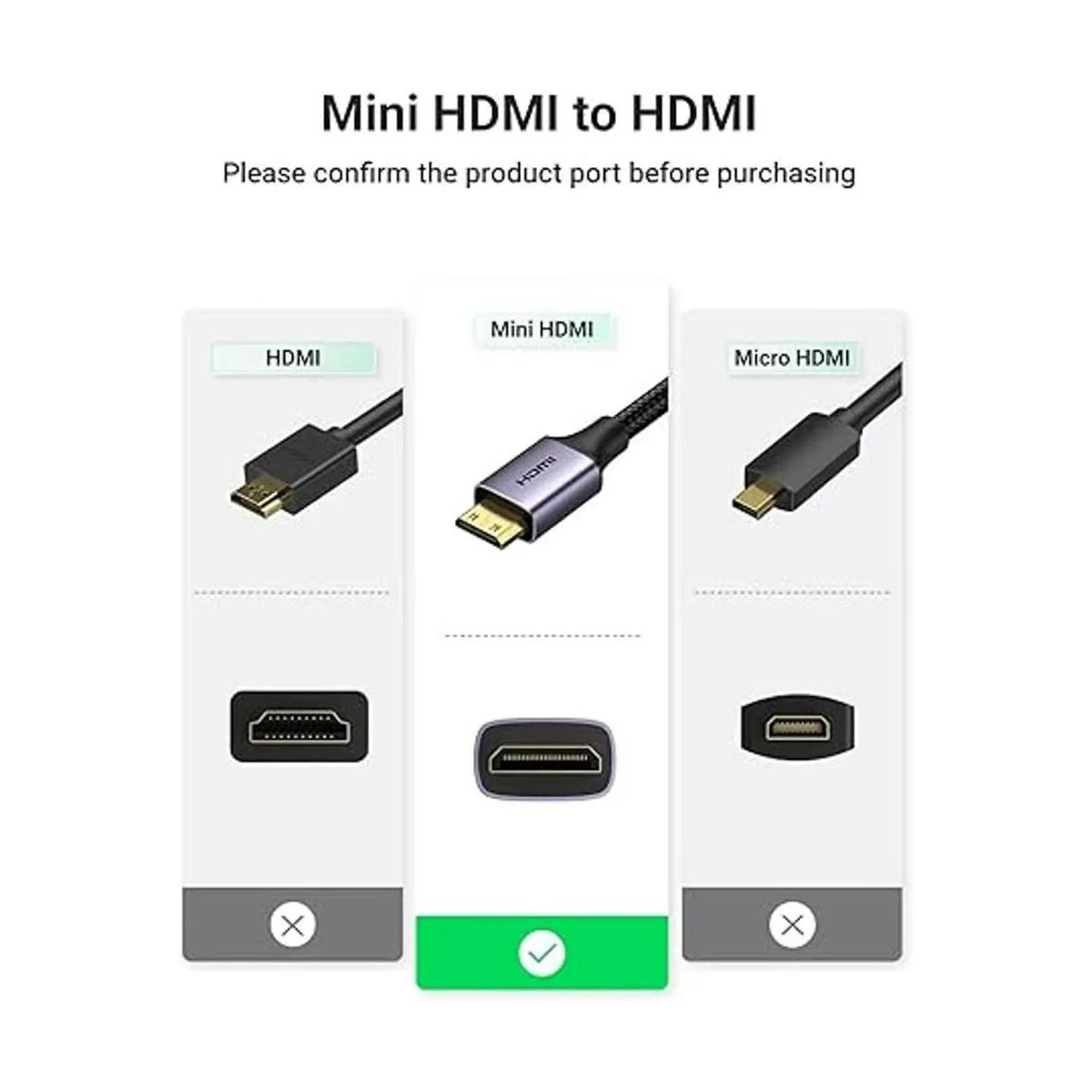 Adaptador Mini HDMI a HDMI: el convertidor adaptador UGREEN mini HDMI macho a HDMI hembra convierte fácilmente el puerto mini HDMI en tu laptop, videocámara, cámara o incluso alguna tableta a una interfaz HDMI tipo A estándar en TV, monitor o proyector. Características de transmisión bidireccional, soporta mini HDMI a HDMI y HDMI a mini HDMI. Nota: asegúrate de que tu dispositivo tenga un puerto Mini HDMI.