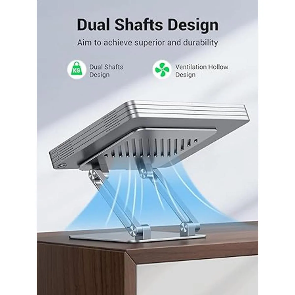 UGREEN Soporte para tableta para escritorio, soporte de doble barra de aluminio, soporte de tableta de escritorio, soporte ajustable plegable y elevador multiángulo compatible con iPad Pro 12.9, 9.7, 10.5, iPad Air Mini 4, 3, 2, plateado