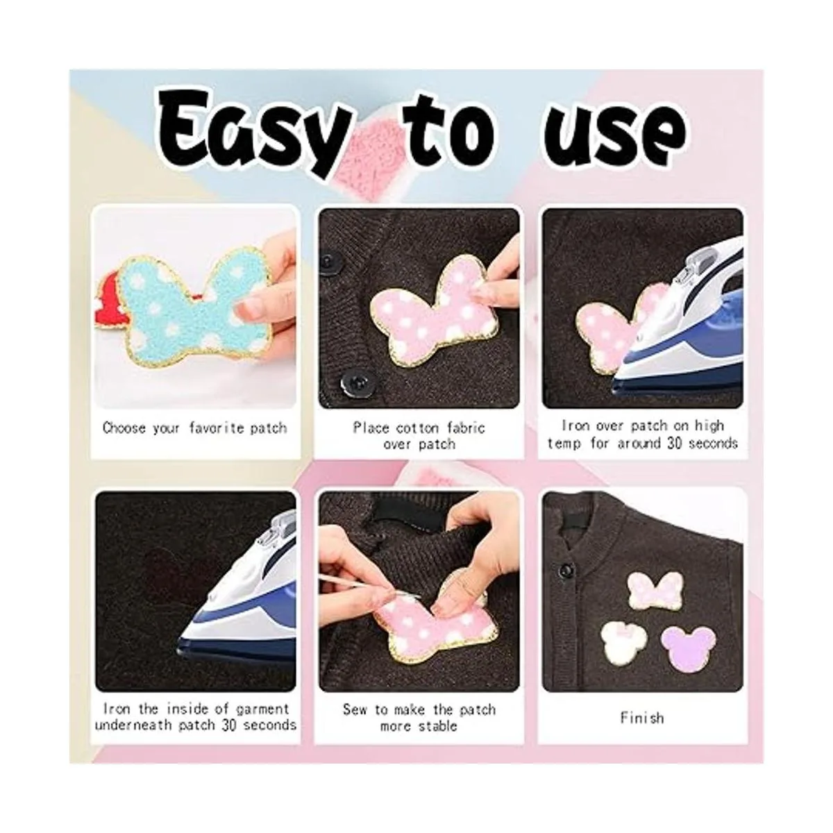 Amplia aplicación: nuestros coloridos parches bordados de chenilla para planchar son adecuados para la reparación y decoración de la mayoría de prendas, como suéteres, jeans, bufandas, sombreros, zapatos, camisas, bolsas y algunas otras manualidades de tela, tanto hermosos como de moda, añadiendo brillo a tu vida diaria