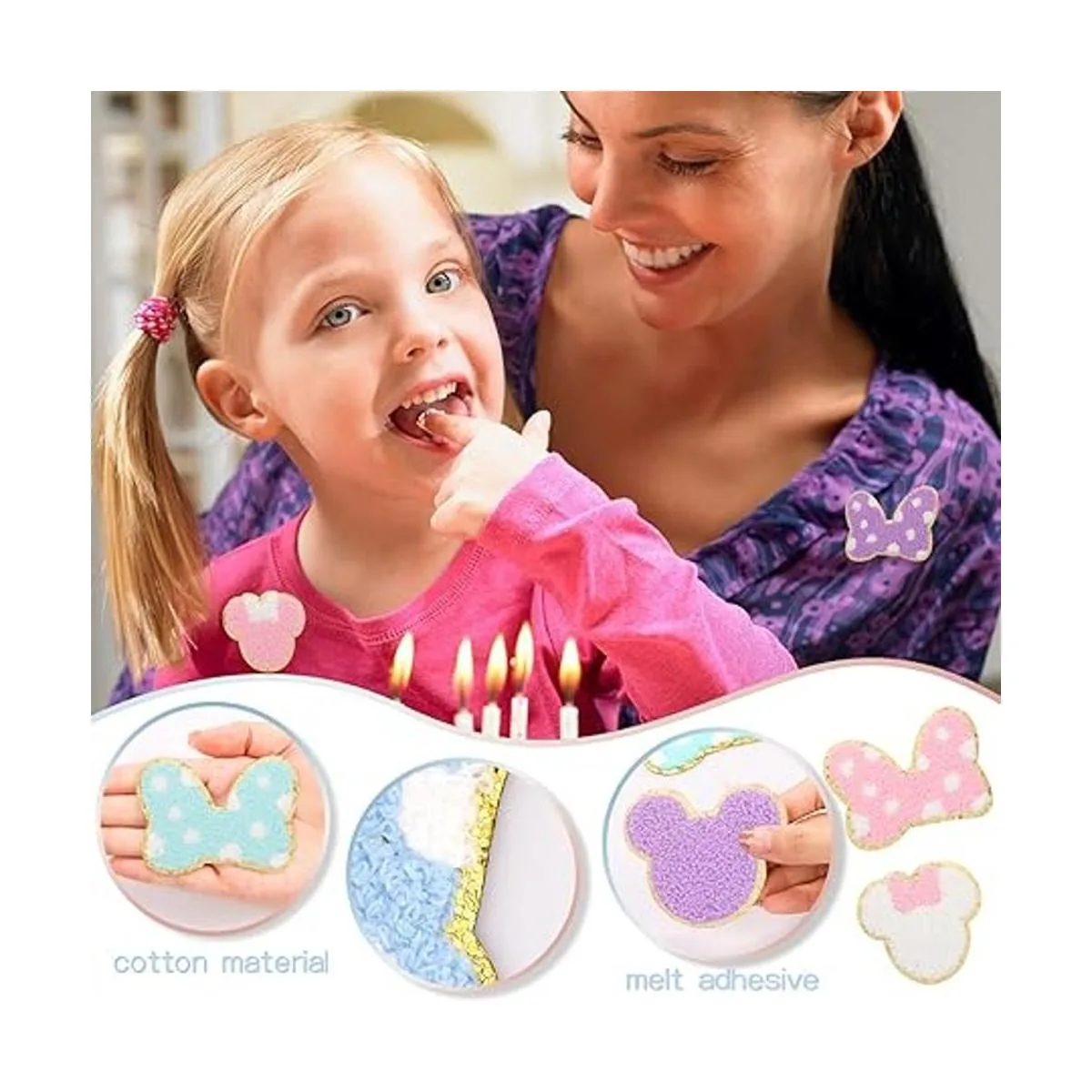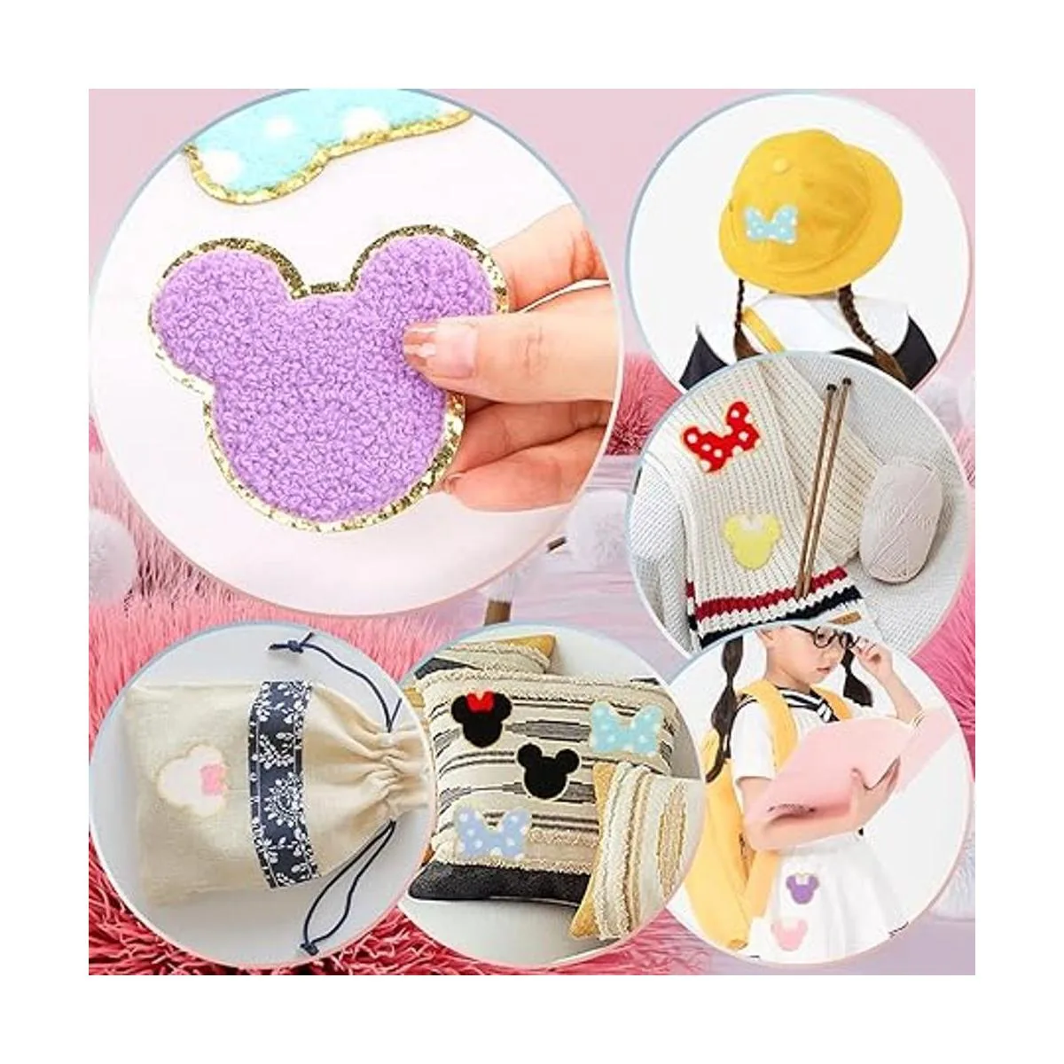 Contenido del paquete: recibirás 15 parches de chenilla con cabeza de ratón de castillo, colores vivos, estilos brillantes, todos los estilos de parches tienen 5 colores diferentes para satisfacer tus diversas necesidades de producción de manualidades de costura