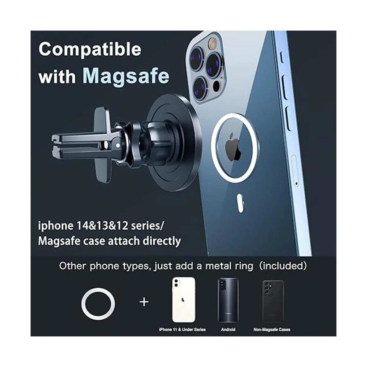 Funciona para todos los teléfonos: el soporte magnético para teléfono UIBI está especialmente diseñado para iPhone 14/13/12 Magsafe, iPhone 14/13/12 Pro Max Mini, Magsafe oficial y otras marcas de fundas magnéticas integradas se fijan directamente, no requiere operación adicional. Además, este imán para coche viene con un anillo de metal adicional. Al fijar el anillo de metal incluido a la funda de tu teléfono, teléfonos como iPhone 11 y debajo de la serie y Android se pueden sostener como de costumbre. No te preocupes, este soporte magnético para teléfono de coche todavía tiene una increíble absorción. Nota: para utilizar el anillo de metal, simplemente coloca el anillo de metal en el exterior de la funda, en lugar del interior de la funda, por lo que no afectará a la fuerza magnética.
