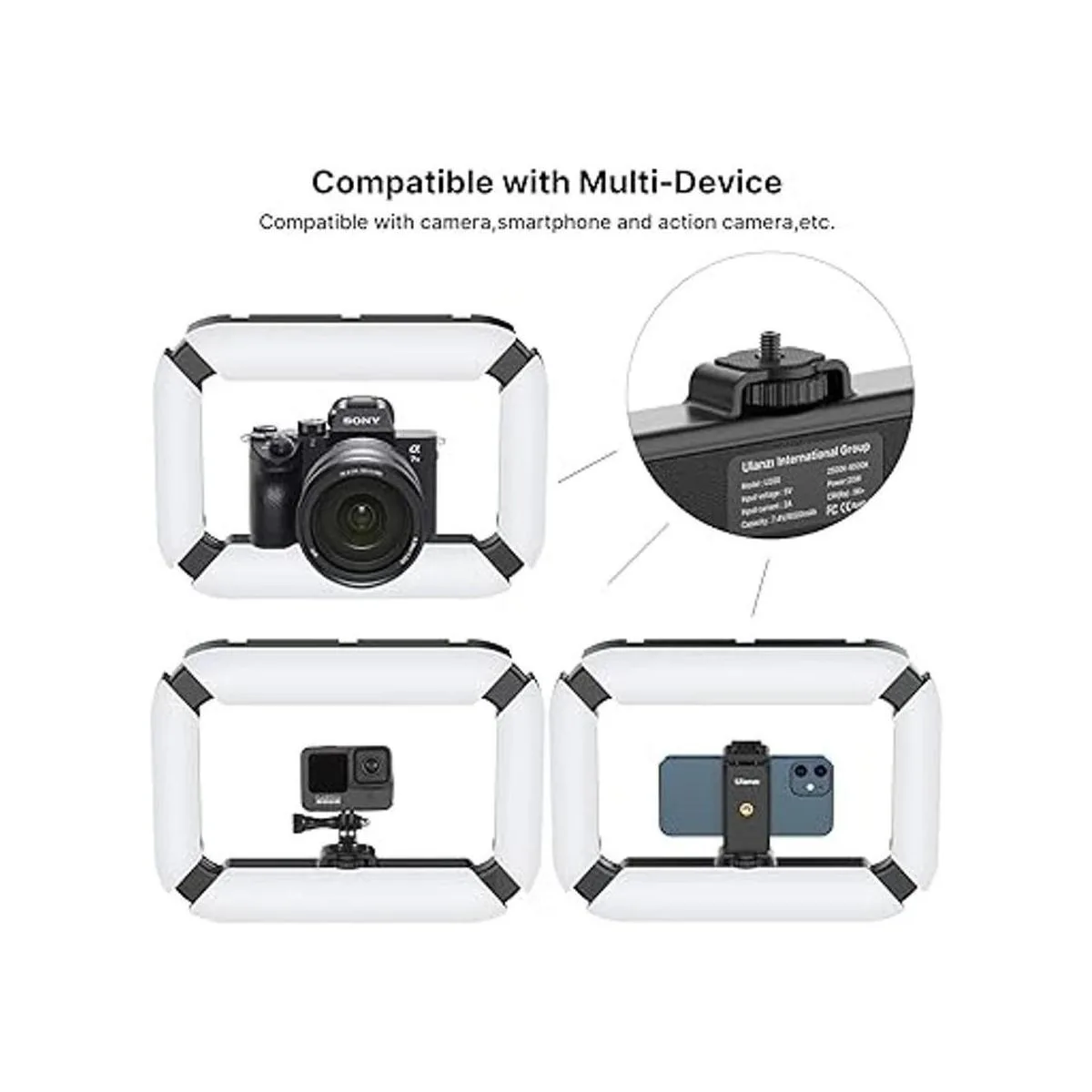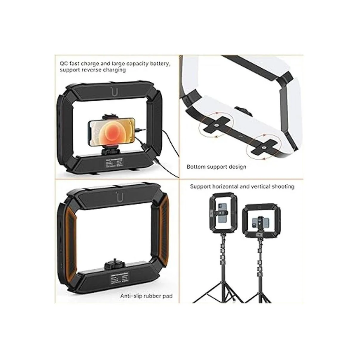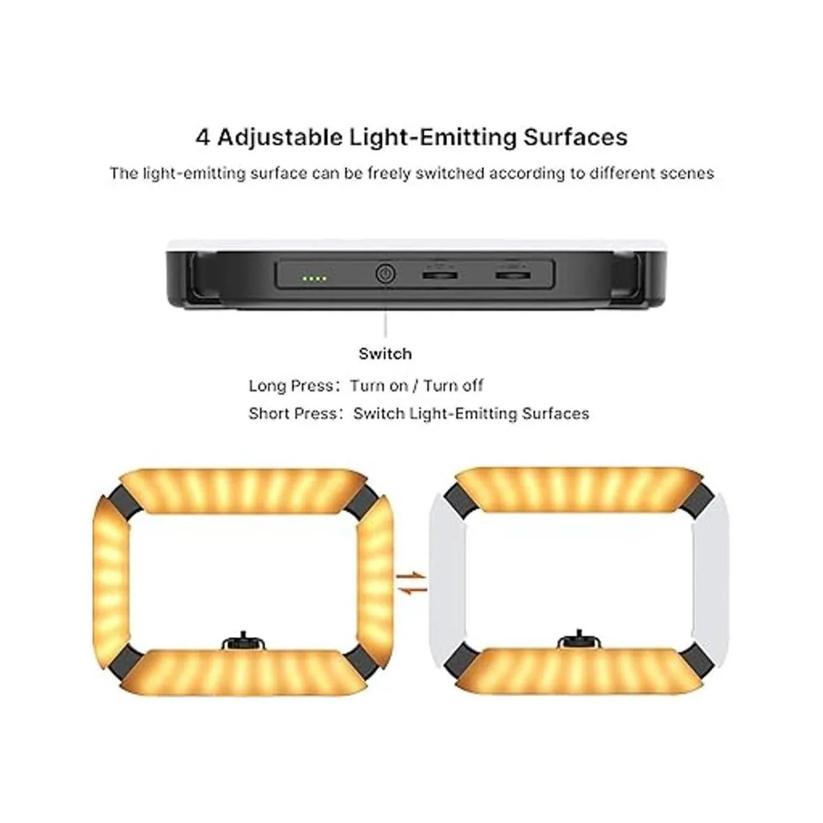 Diseñado con 3 zapatos fríos : se puede fijar con luz de relleno, micrófono o soporte de mango, etc. Hay 4 superficies emisoras de luz ajustables. La superficie emisora de luz se puede cambiar libremente según diferentes escenas.