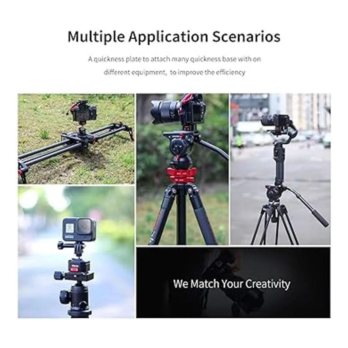 Calidad confiable: El soporte de liberación rápida para trípode está hecho de aluminio, resistente y duradero; carga máxima de 50 kg, seguro; Almohadilla de goma antideslizante.
