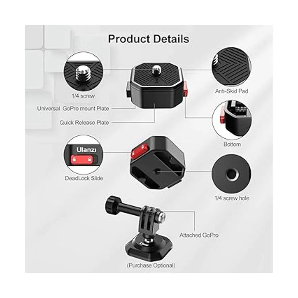 Ulanzi Claw Adaptador de montaje de cámara QR para trípode de placa de liberación rápida, kit de configuración rápida con tornillo de 6.35 mm para cámaras Canon / Sony / Nikon / Zhiyun / Feiyu / DJI / Moza. Los estabilizadores cambian entre trípode / monopié / deslizador.