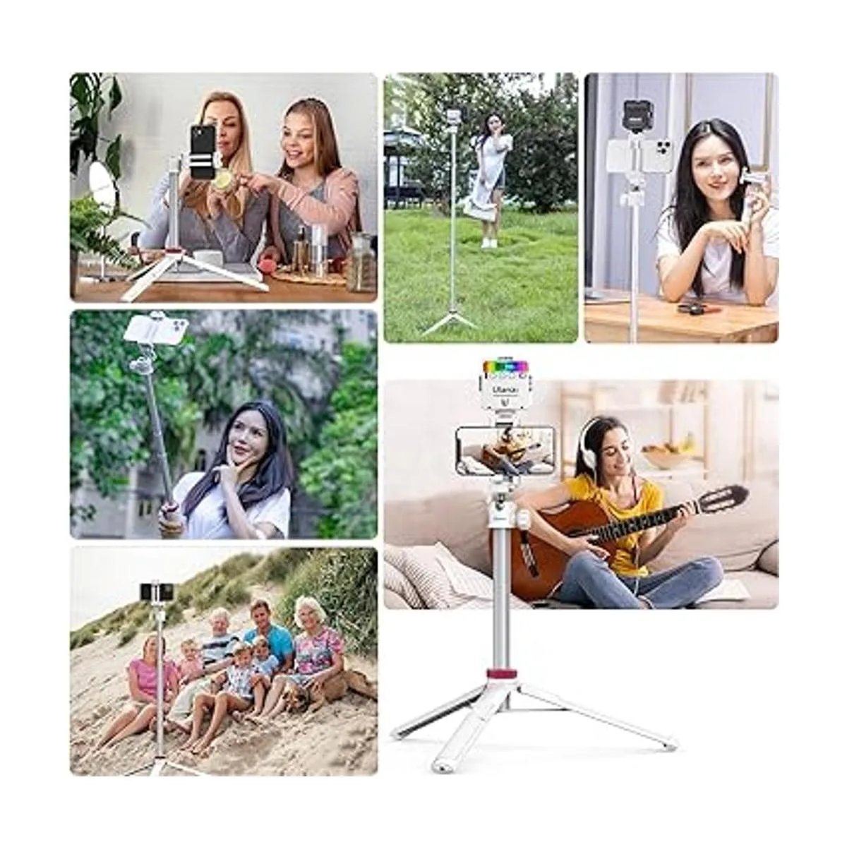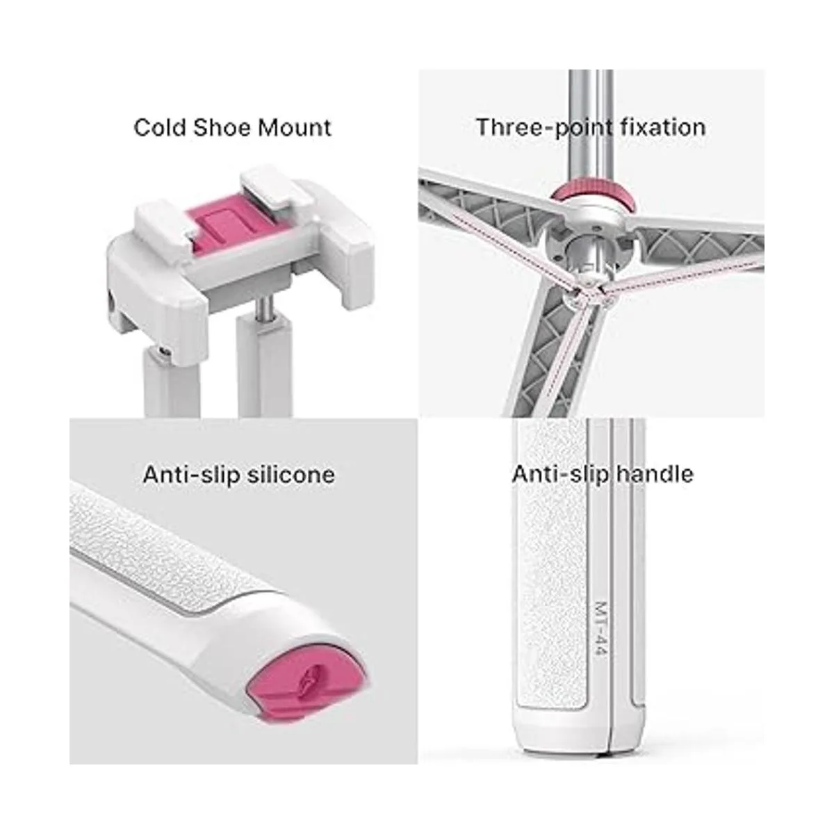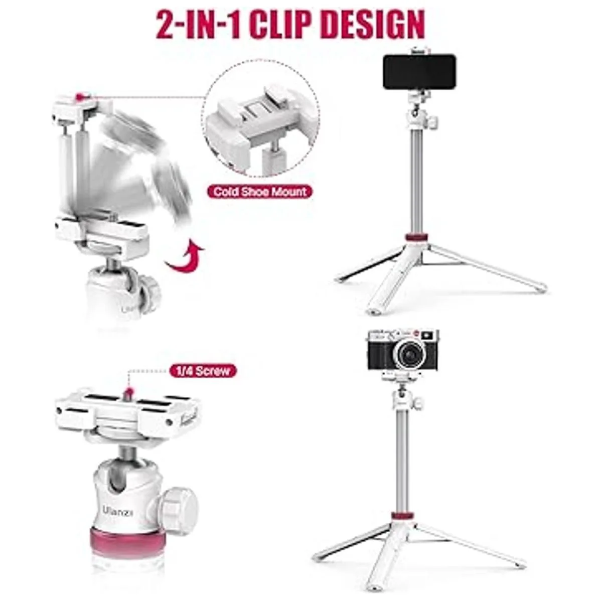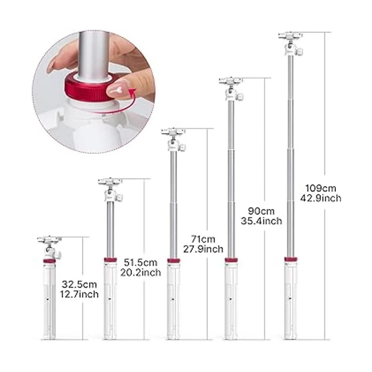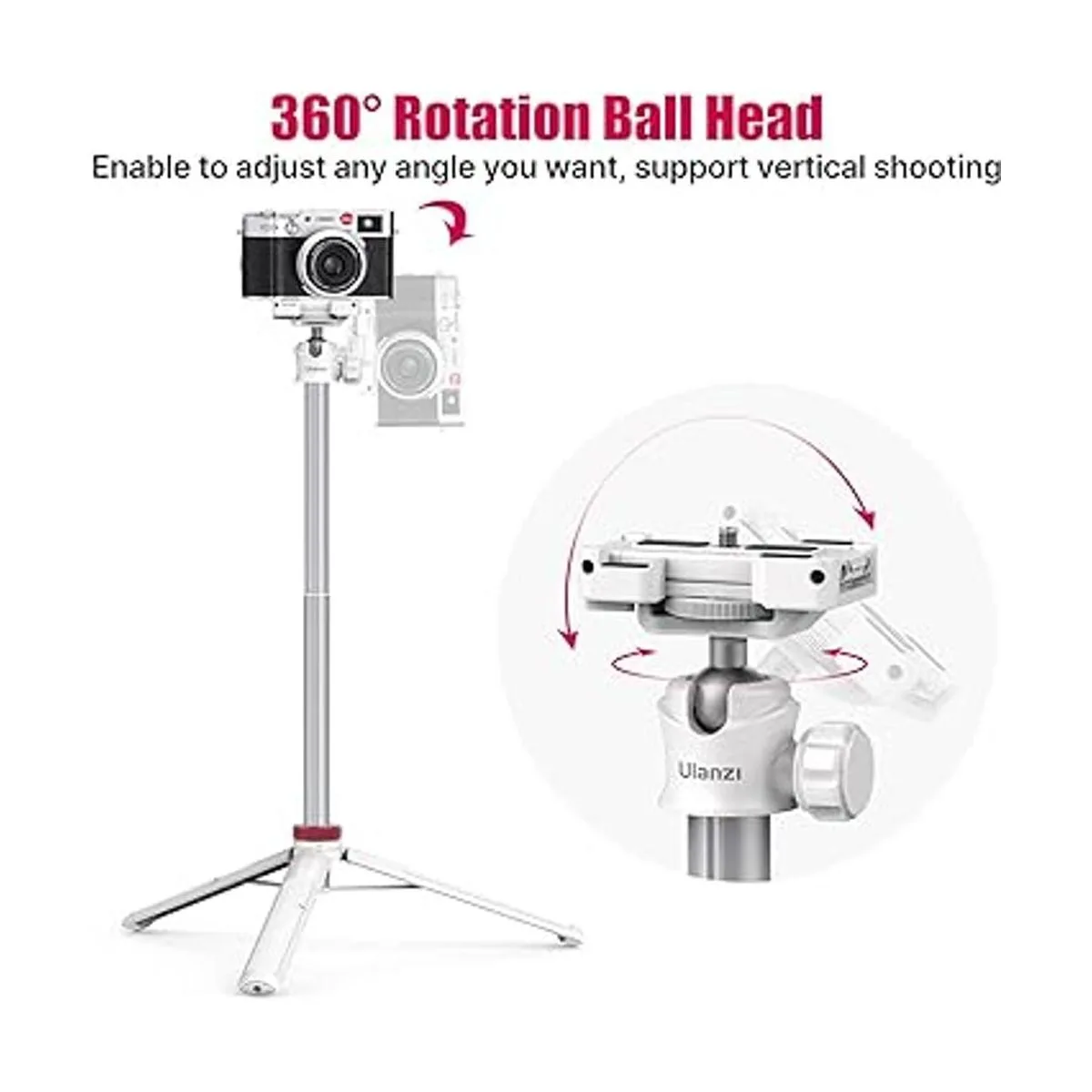 ULANZI MT44 Trípode extensible para teléfono, 44 pulgadas, soporte de trípode para vlog para teléfono 2 en 1, trípode de cámara con cabeza de bola de 360 para iPhone, Sony, Canon GoPro, ligero para viajes, color blanco
