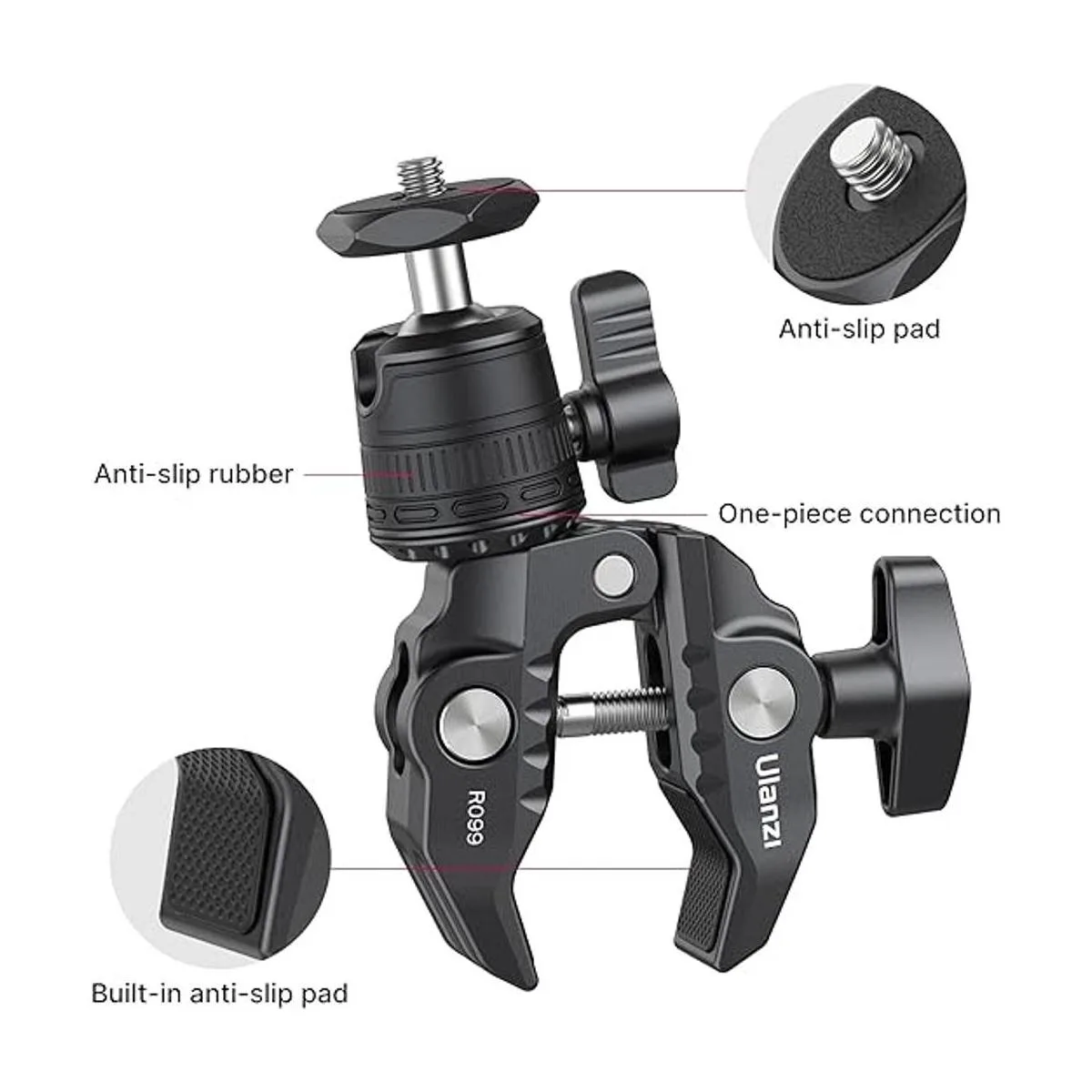 ULANZI R099 Abrazadera de montaje de cámara con cabezal de bola de 360, soporte de manillar para bicicletabicicletamotocicleta GoProAKASODJI Osmo Action Cameras, DSLRCámaraMonitorGoPro Pole Tube
