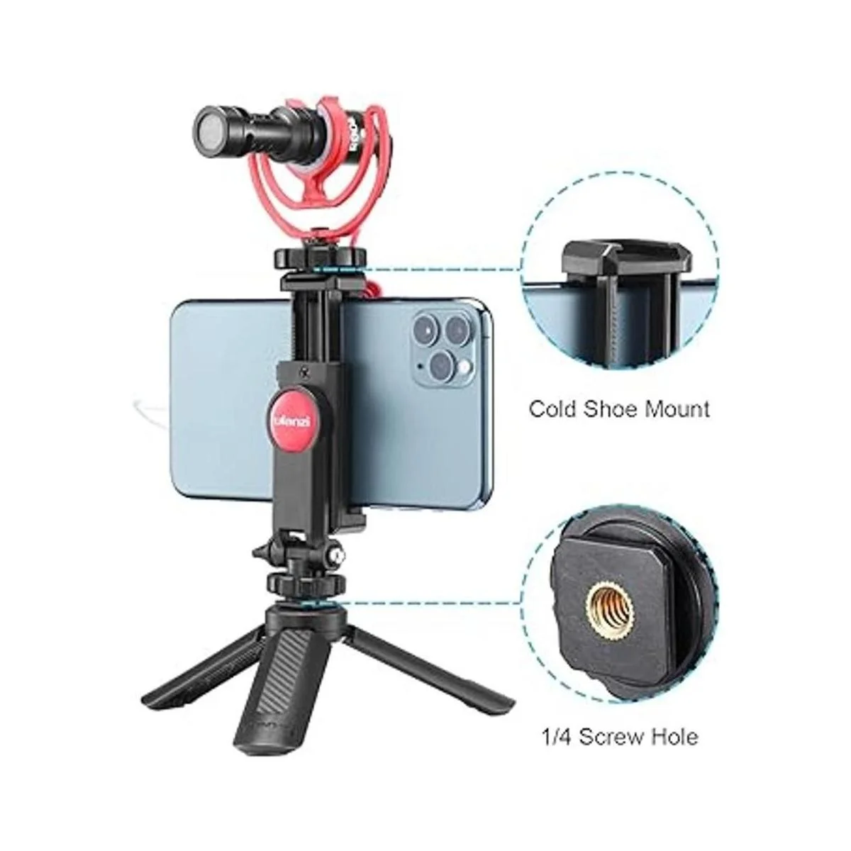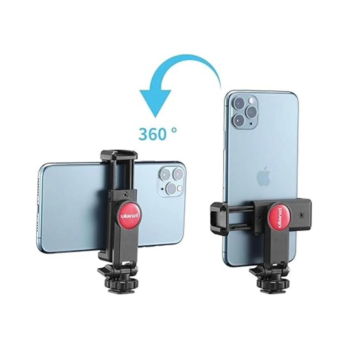 ULANZI Soporte universal para trípode de teléfono con soporte para zapata fría, gira y soporte de abrazadera ajustable, adaptador de clip para teléfono inteligente para iPhone 11 Pro Max X XR Xs Max 8 7 Plus Samsung Galaxy S10 S9 Note10 Google