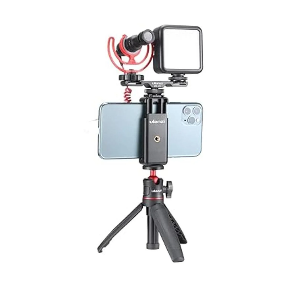 ULANZI ST07 Soporte de trípode para teléfono con soporte de zapata fría para micrófono, luz de video LED, tornillo de trípode de 14 pulgadas para iPhone 11ProPro Max XS Max XR X 8 7 Plus Samsung Galaxy OnePlus Google Pixel Vlog Vlogging