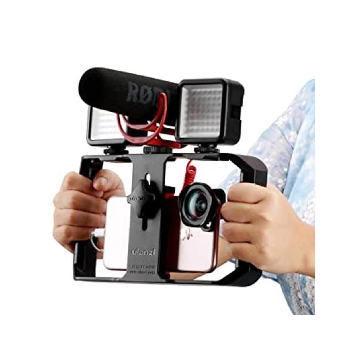 Diseño simple y multifunción: el equipo de video para smartphone Ulanzi ofrece lo que uno necesita para estar en movimiento como cineasta mientras utiliza un iPhone, ya que tiene 3 soportes de zapata fría para fijar micrófonos, luces de vídeo y trípode, etc