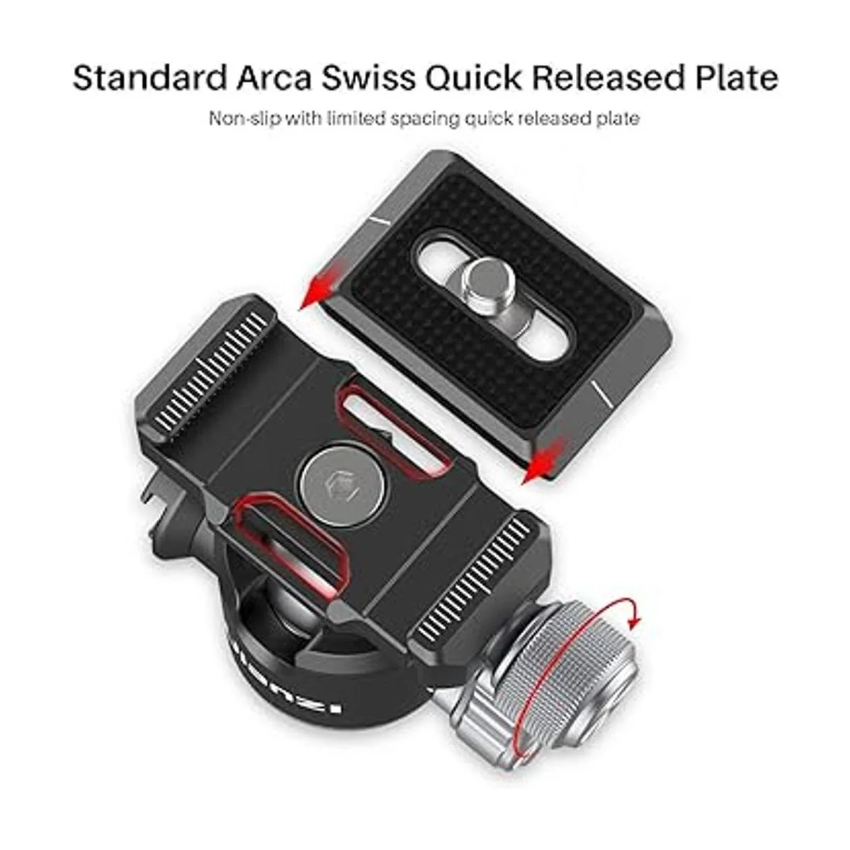 ULANZI U80L Cabezal de bola de metal de liberación rápida para cámara Arca Swiss giratoria de 360 con placa de liberación rápida y zapata fría, carga de 22 libras22.0 lbs para trípode de 14 pulgadas, monoópodo, réflex digital, cámara