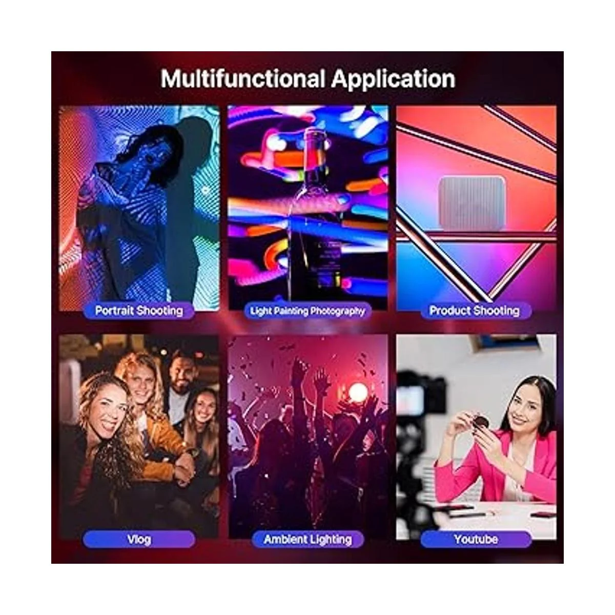 Luces de video LED RGB profesionales La nueva versión de la luz de video LED VL49 RGB adopta 60 cuentas LED de alta reproducción cromática, ángulo de iluminación de hasta 120, el brillo puede alcanzar 800LUX1.6 ft, la cabina CRI95 más alta completamente con el color perfecto de la luz solar y garantiza que su luz sea natural realista. Aplicar a retratos, niños, bodas y nuevas fotografías, etc.