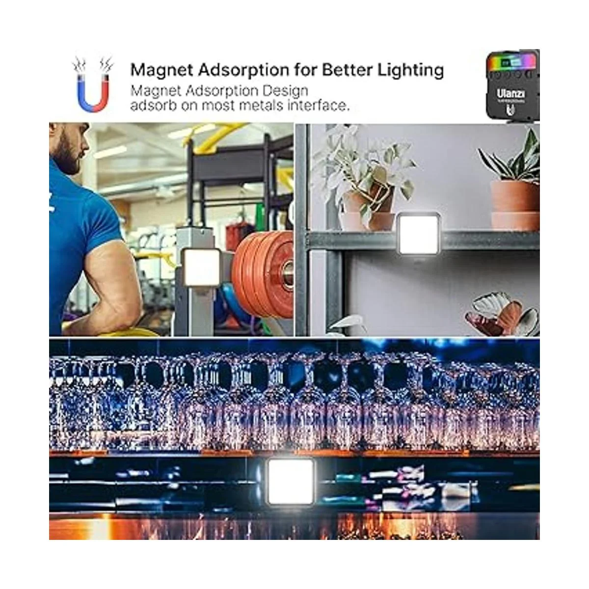 ULANZI VL49 Luces de video RGB, luz de cámara LED de 360° a todo color, iluminación de fotografía portátil con 3 zapatos fríos, 2000 mAh recargable CRI 95+ 25009000K lámpara de panel regulable compatible con atracción magnética