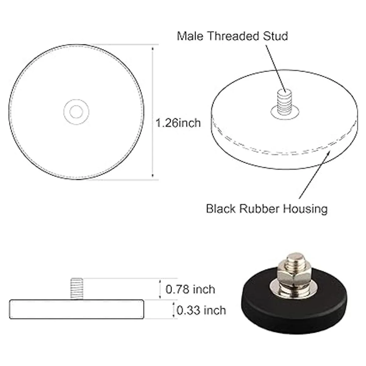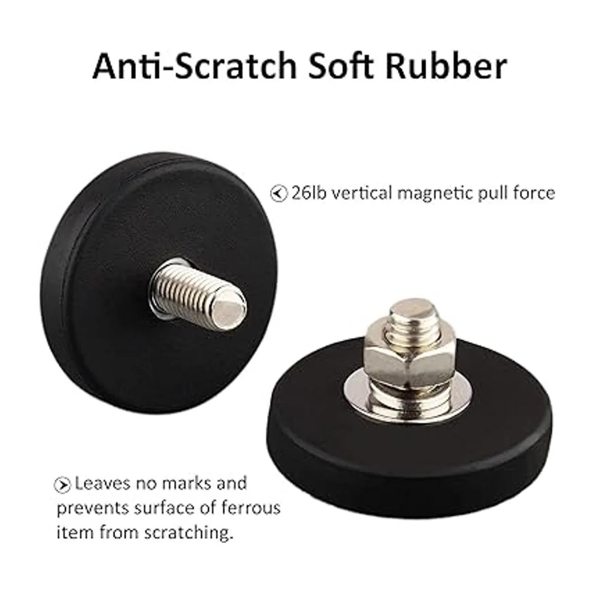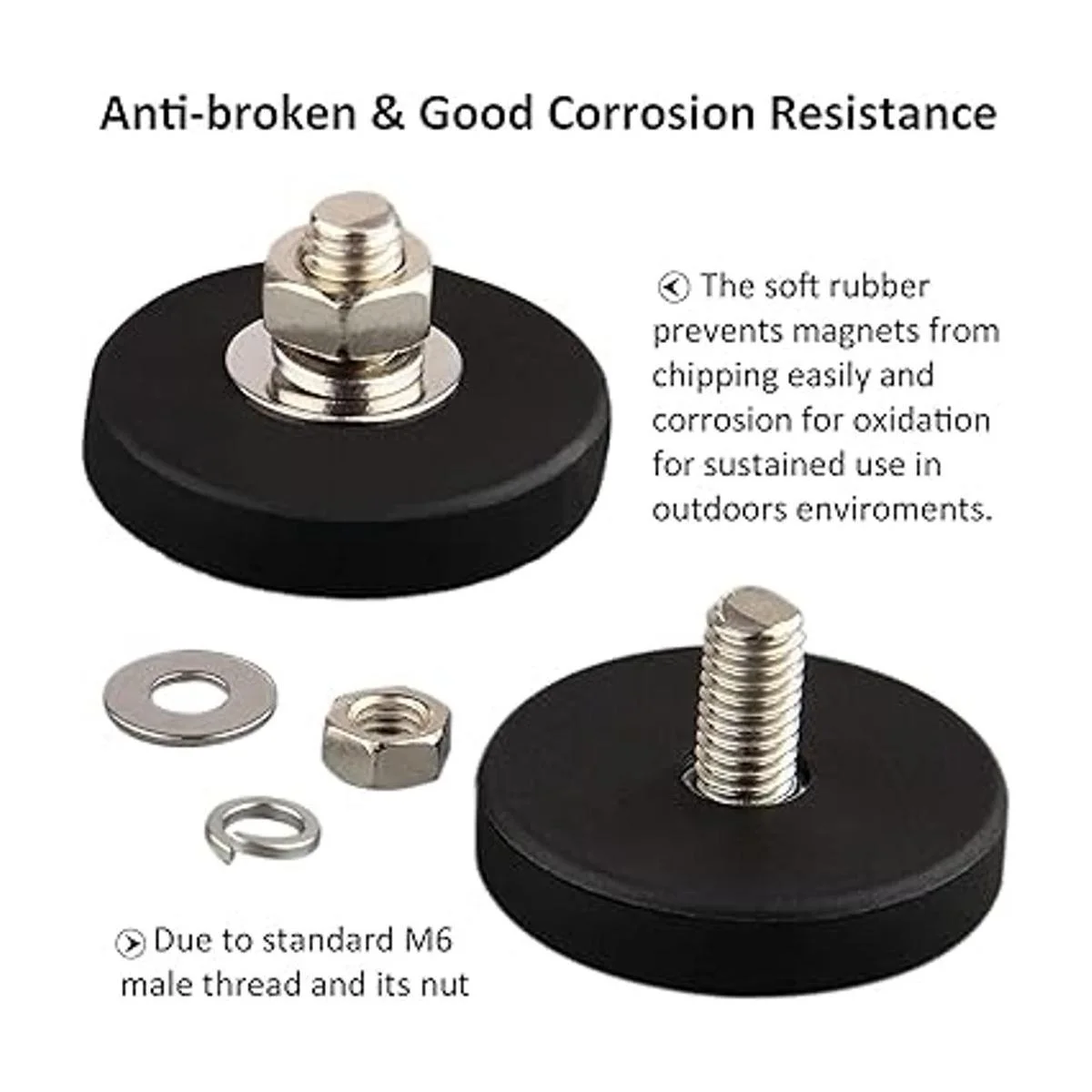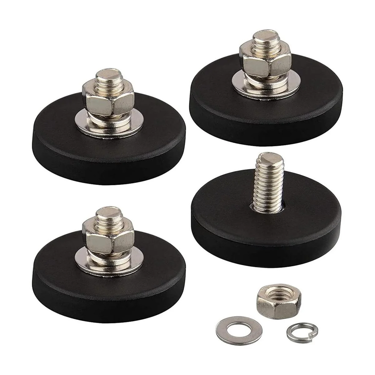 El paquete incluye imán con rosca macho : 4 imanes recubiertos de goma de 26 libras arandela de resorte M6 arandela plana M6 tuerca incluida
