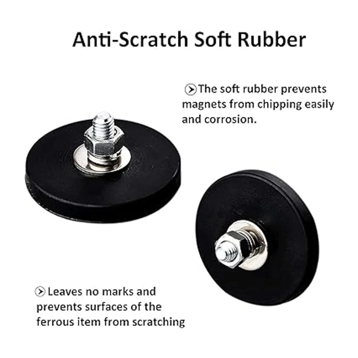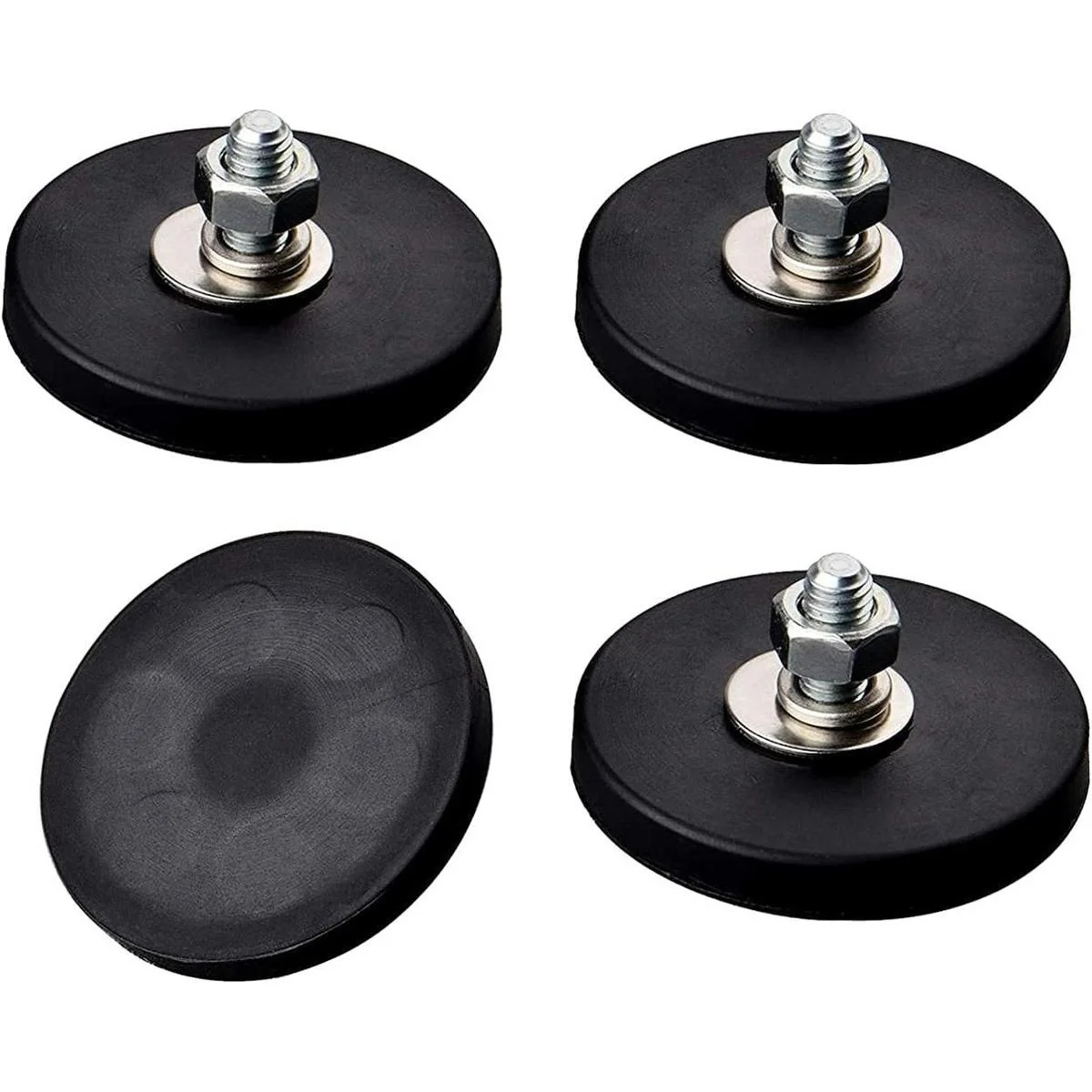 ULIBERMAGNET Paquete de 4 imanes de neodimio recubiertos de goma, fuerte perno de rosca M6 de 24 libras, imanes de montaje antiarañazos con perno para montar iluminación LED, accesorios, herramientas de sujeción y organización