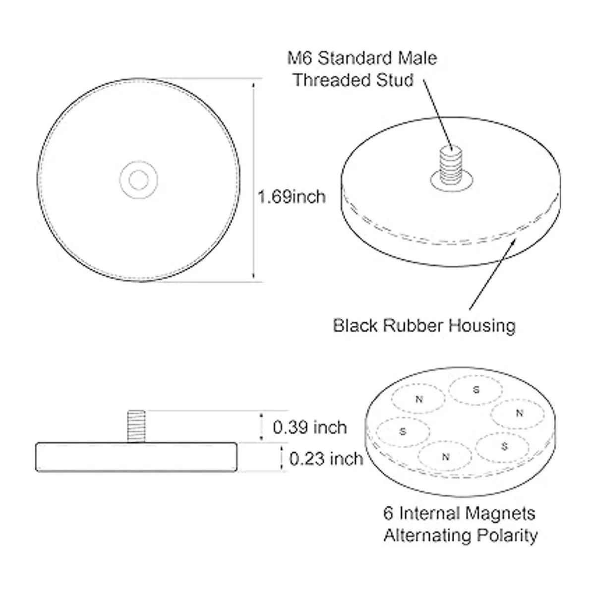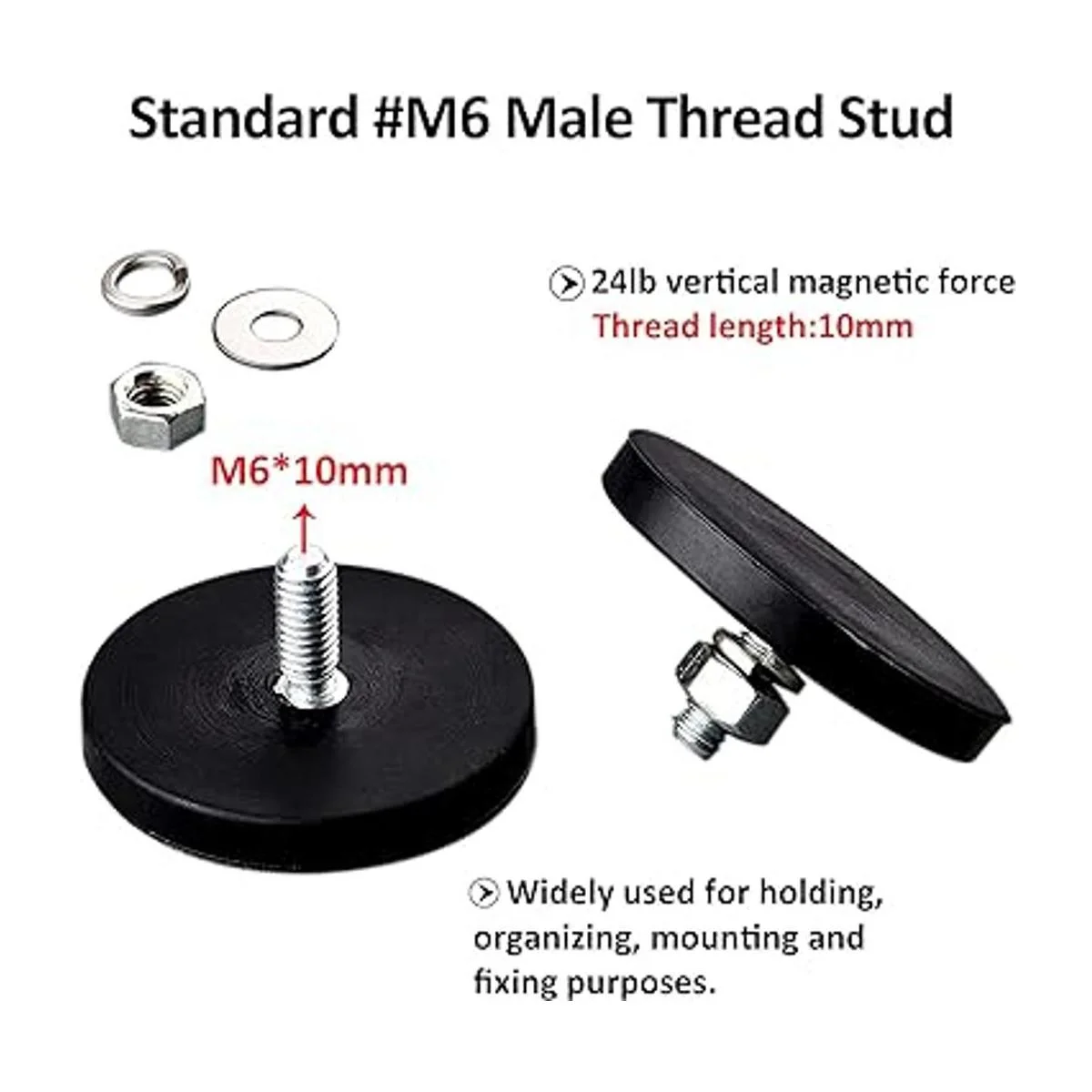 El paquete incluye imán con rosca macho : 4 imanes recubiertos de goma de 24 libras arandela de resorte M6 arandela plana M6 tuerca incluida
