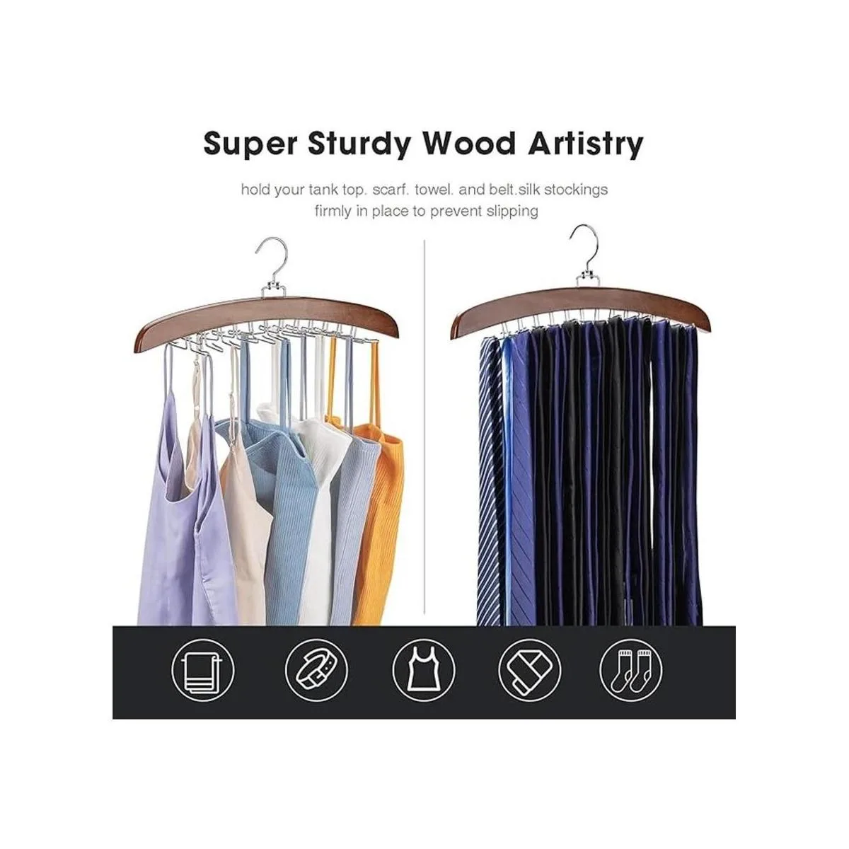 Ulimart Organizador de corbata de madera con 24 ganchos, organizador de corbatas, organizador de cinturón para armario, con rotación mejorada de 360, accesorios de bufandas para brasier, camisetas sin mangas, camisolas