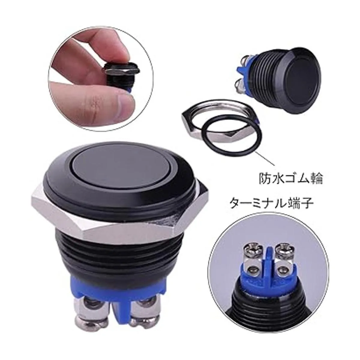 Ulincos interruptor pulsador momentáneo de metal, negro, Negro