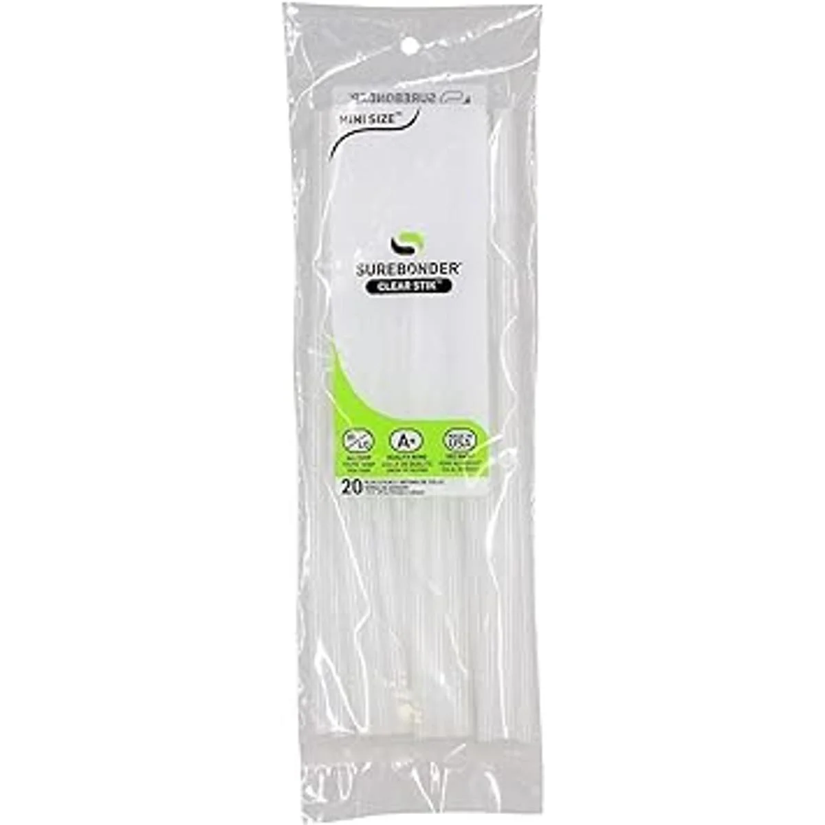 Mini de pegamento de 20 W, 120 voltios. Utiliza barras de pegamento de alta o doble temperatura, 5/16 pulgadas de diámetro por 4 pulgadas o 10 pulgadas de longitud