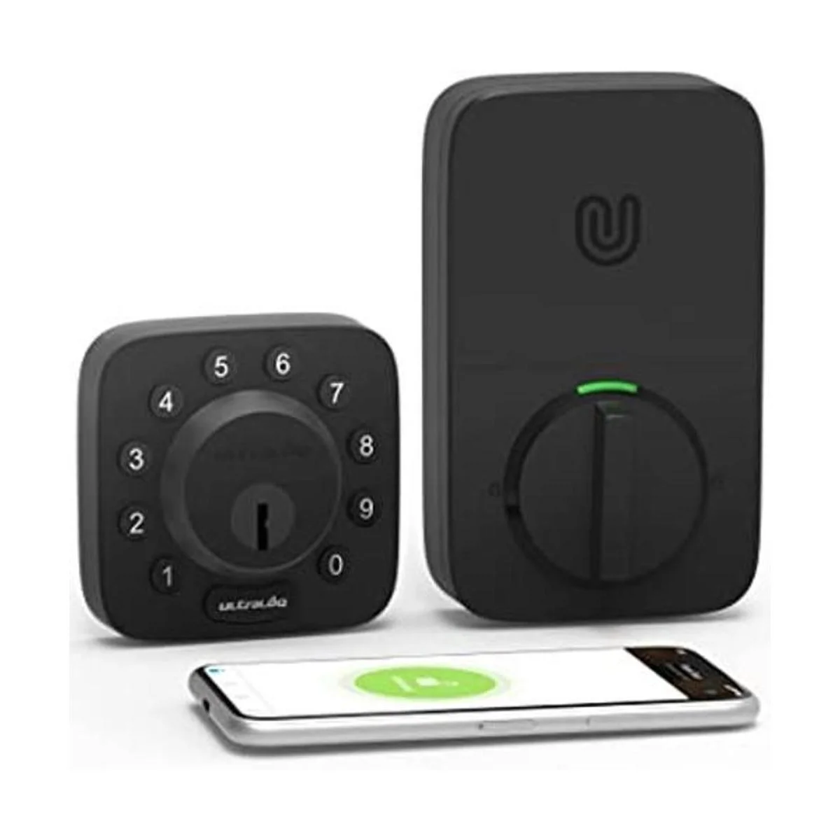 ULTRALOQ Smart Door Lock UBolt Negro, 5 en 1 Cerradura de puerta sin llave con Bluetooth y teclado, Puerta frontal inteligente con cerradura de puerta delantera, sin huella digital