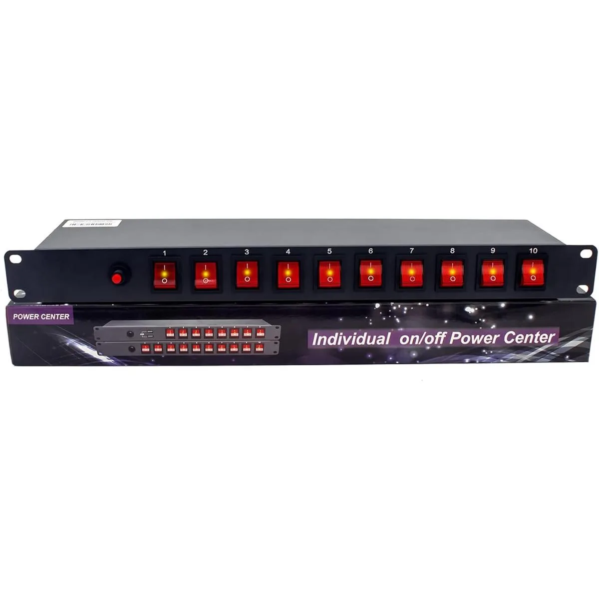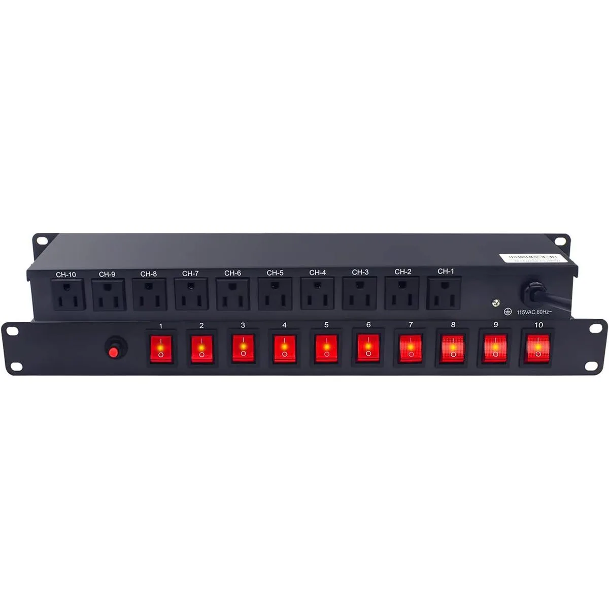 UltraPoE Regleta de alimentación PDU de montaje en rack de 1U y control de interruptor, 10 tomas, 10 interruptores delanteros, interruptor independiente de enchufe único con luz indicadora, 100 V 240 V15A5060 Hz