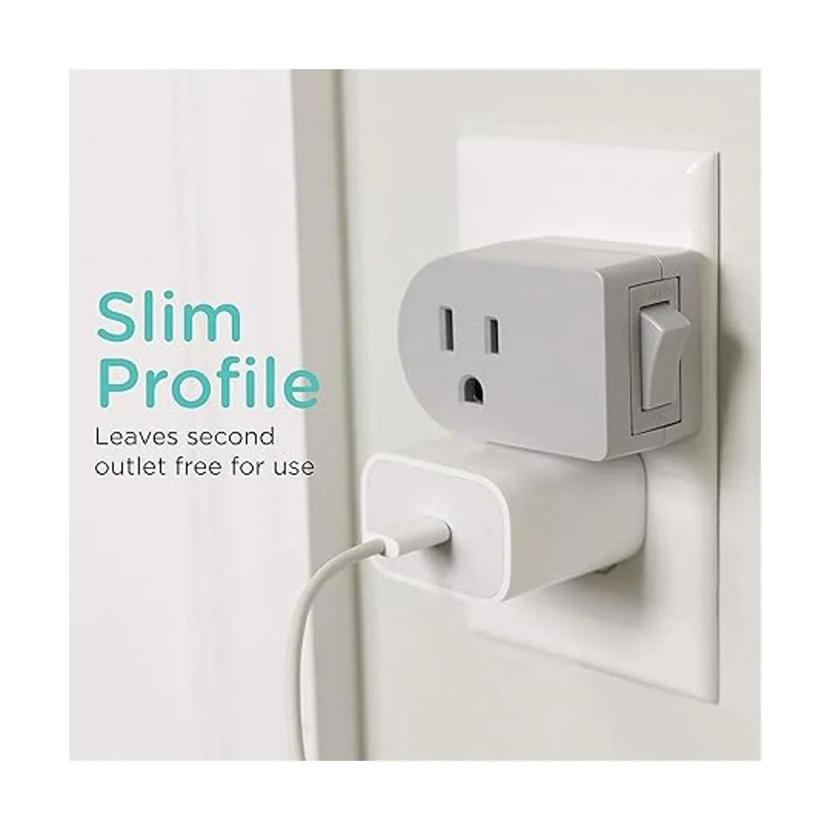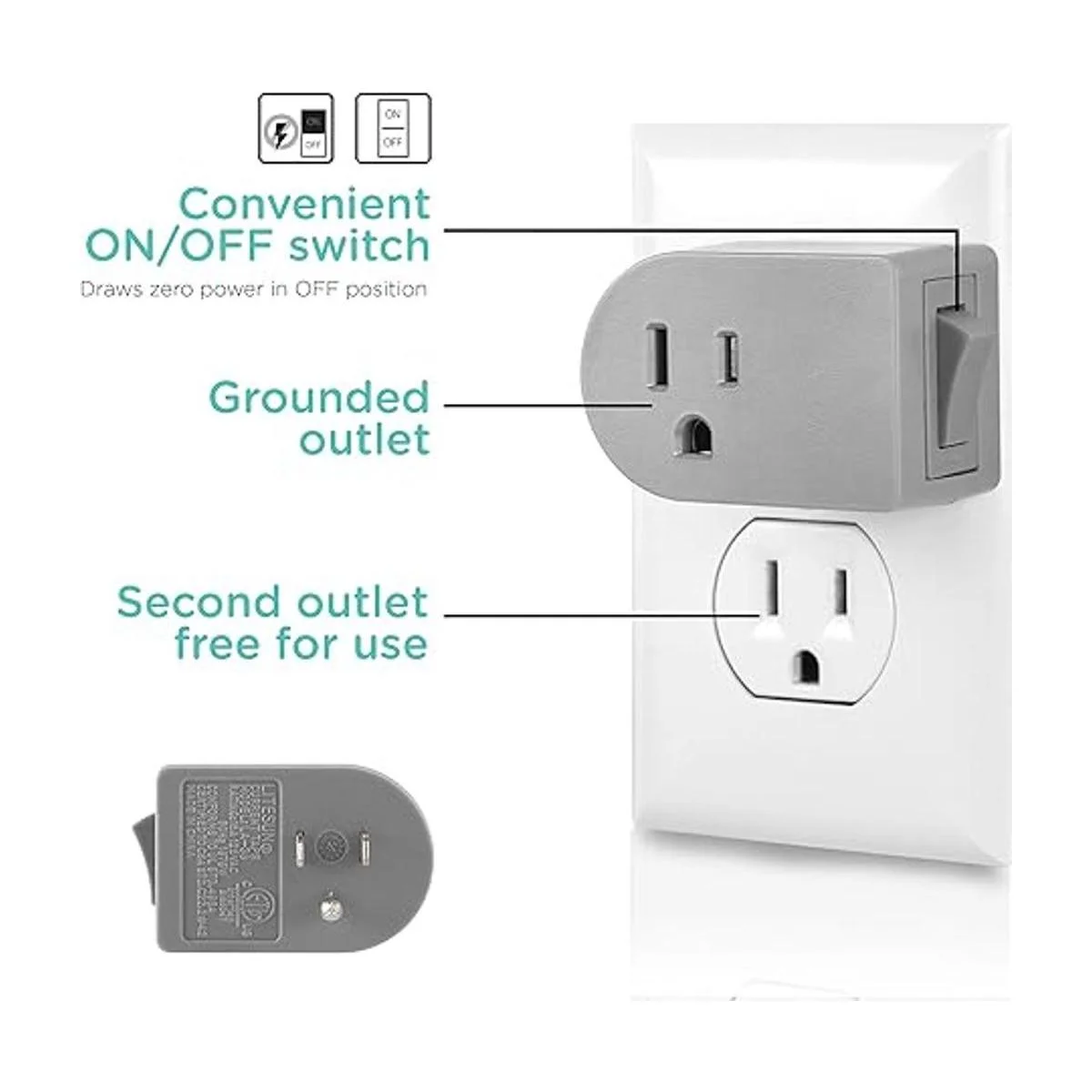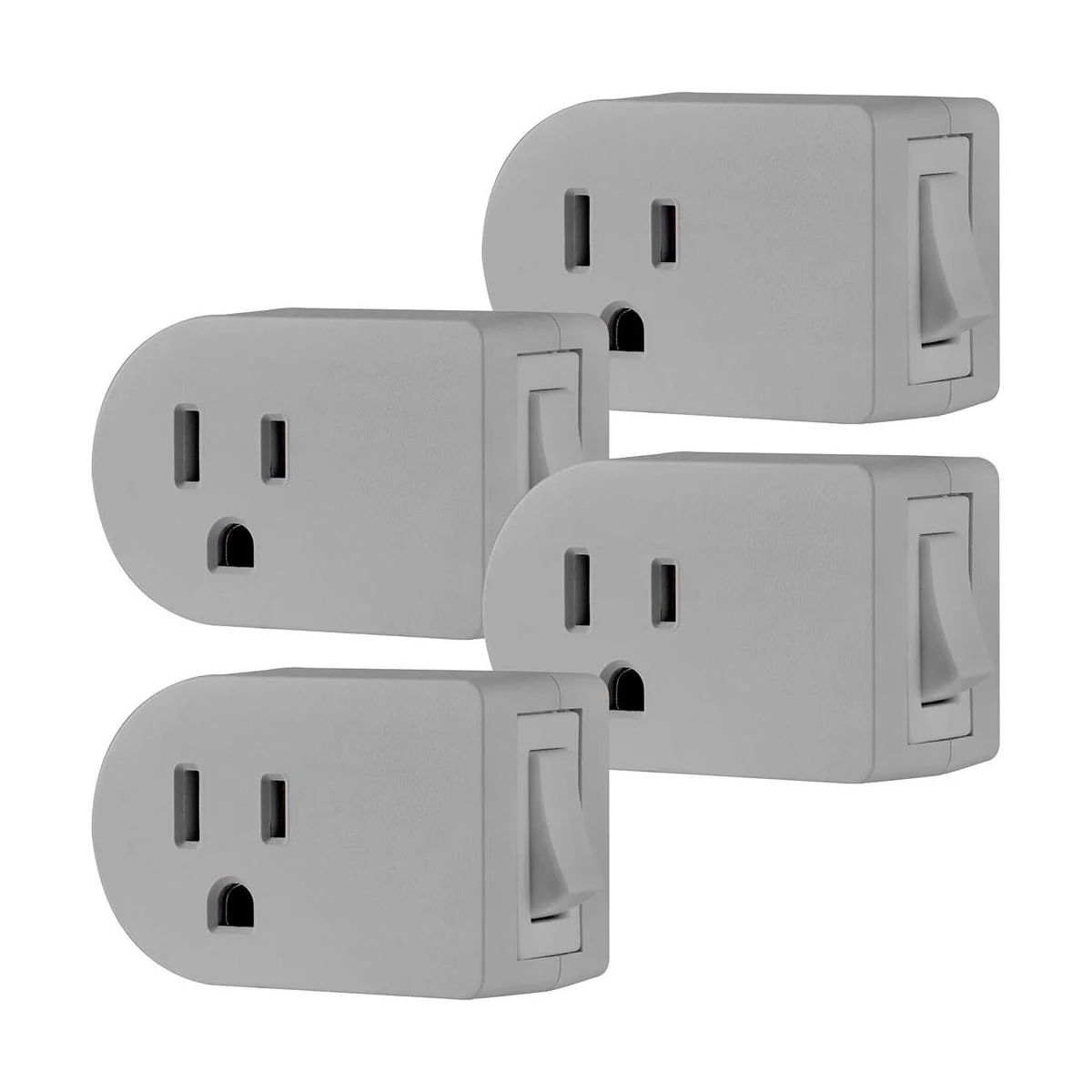 UltraPro Extensor de toma de corriente a tierra fácil de instalar para luces de interior y pequeños electrodomésticos, adaptador de eficiencia energética, diseño de ahorro de espacio, listado UL, paquete de 4 unidades, color gris 47944
