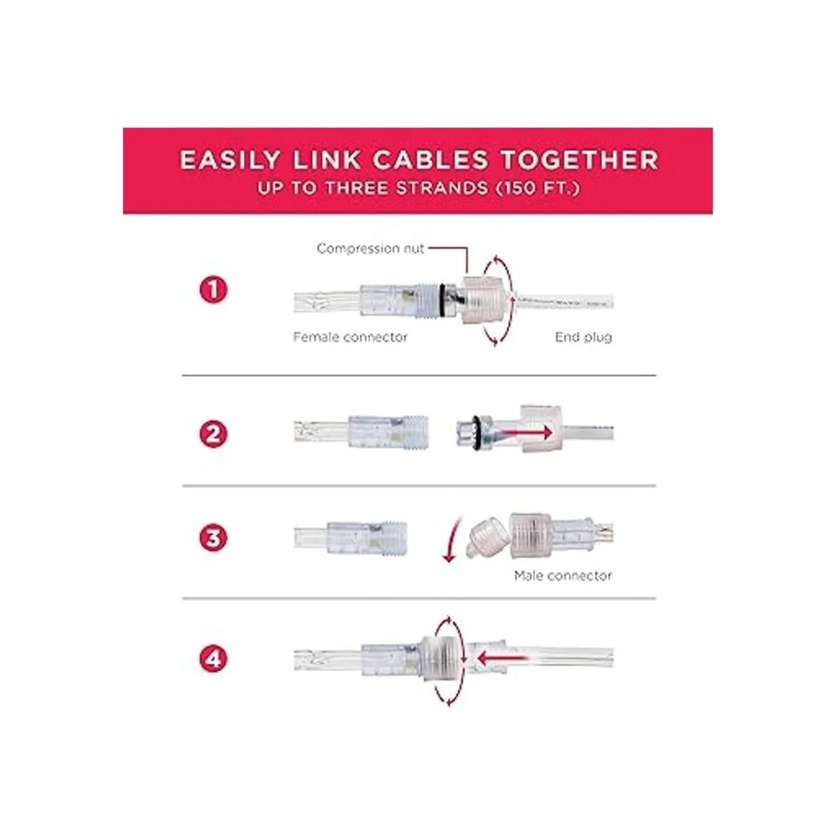 Enlazable: combina juegos adicionales para hasta 150 pies. de luz: disponible en longitudes de 16 pies. 54503, 25 pies. 54504 y 50 pies. 54505