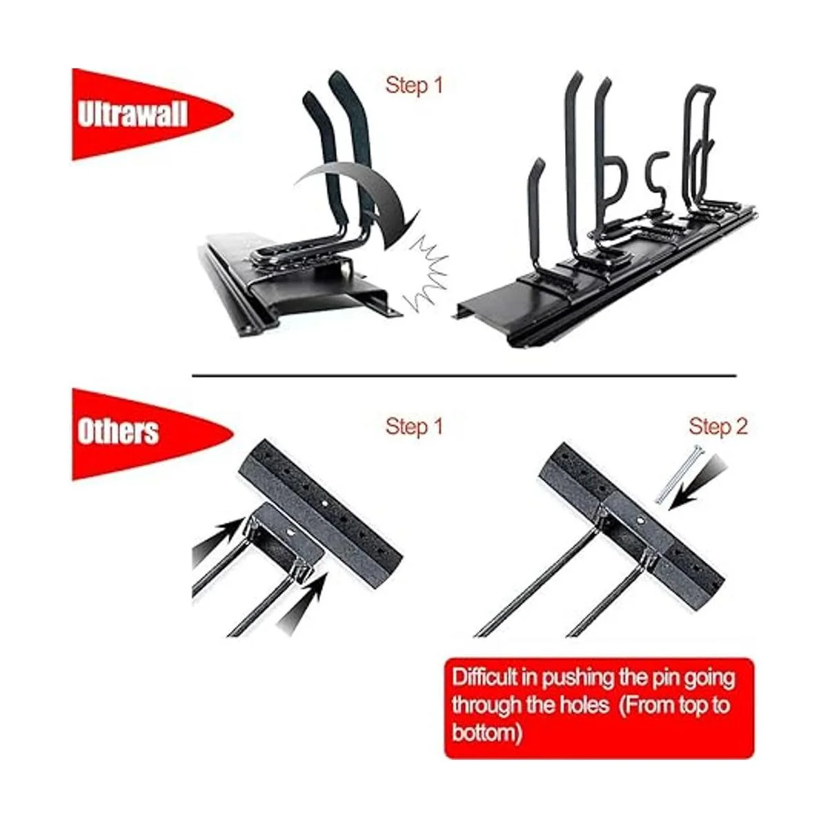 Ultrawall Organizador de herramientas de garaje, soporte de pared, sistema de almacenamiento ajustable, soportes de pared de acero resistente para herramientas, organizador de herramientas de montaje en pared, organizador de herramientas de jardín 6 ganchos, 3 rieles