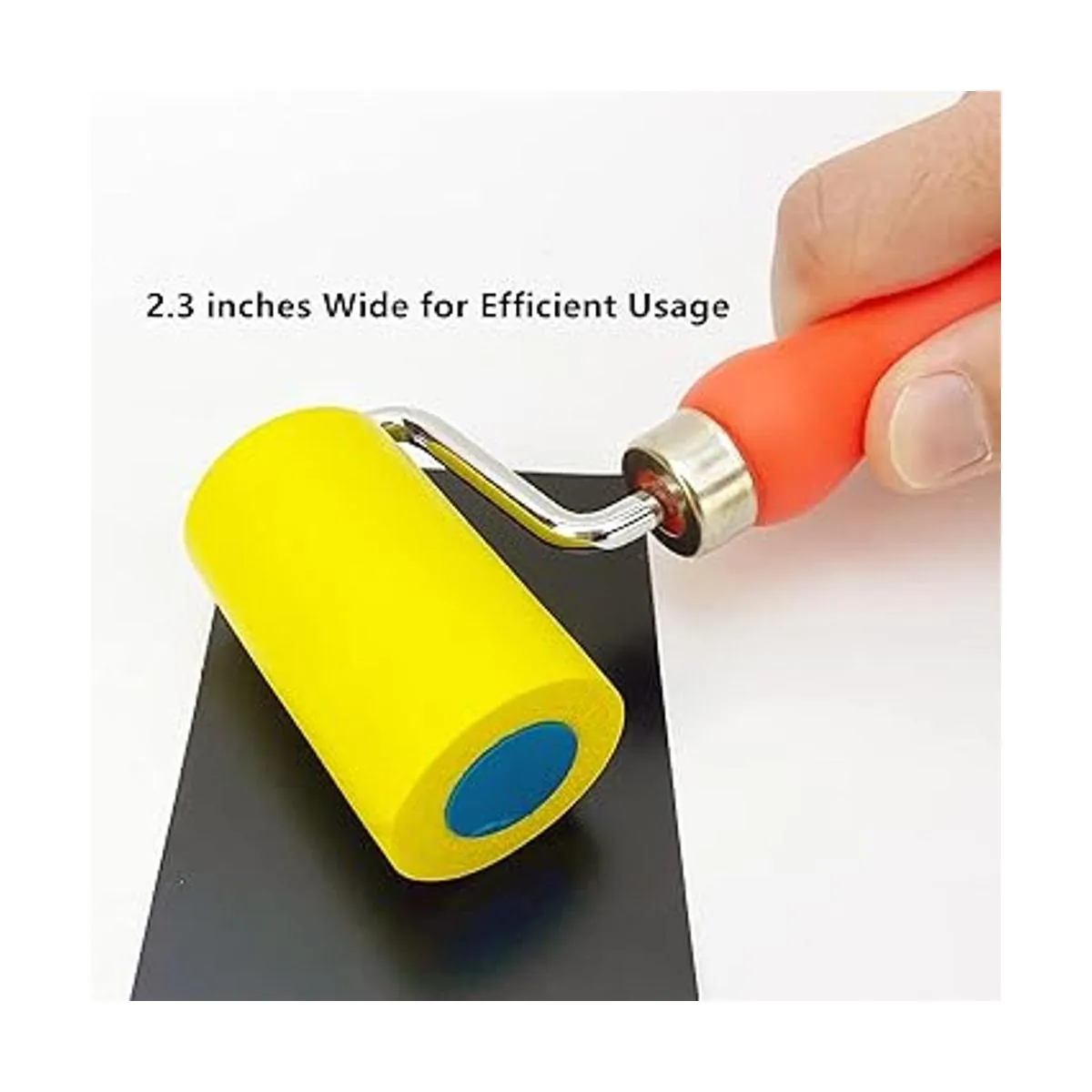 FLEXIBLE SPONGE ROLLER: The roller head is made of high quality soft sponge. Sponge recovers quickly after being pressed. The sponge wheel roller is safe to glass or other delicate surfaces. The 2.3inch wide roller can improve the efficiency of smoothing.