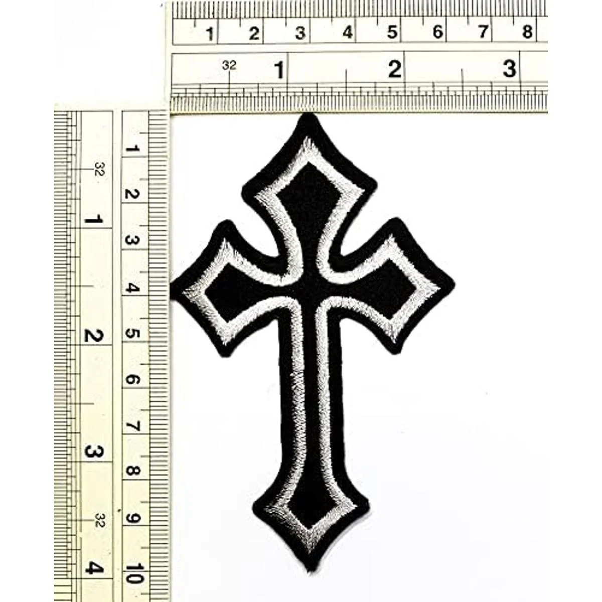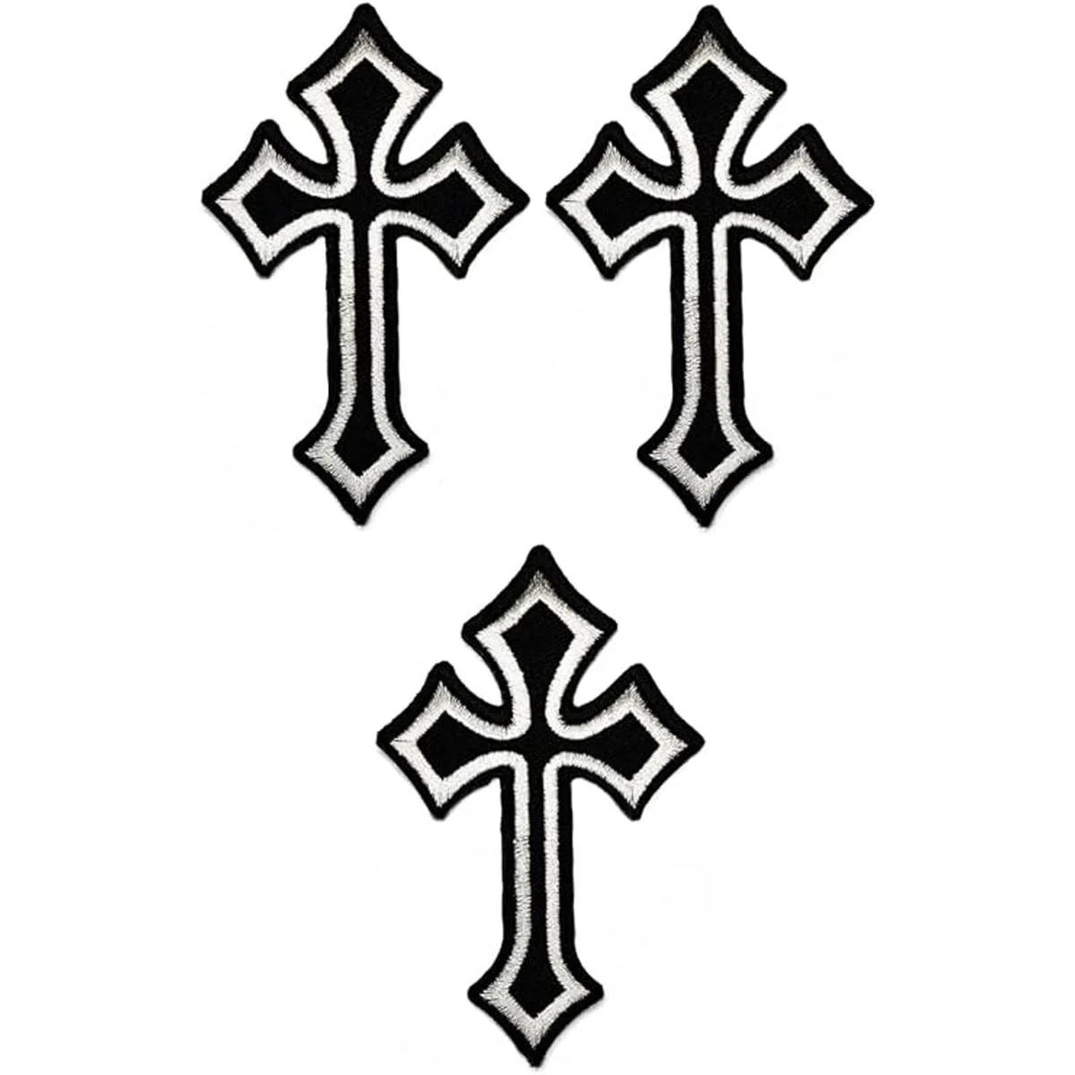 Umama Juego de 3 parches bordados en cruz, color gris celta, cruz medieval, gótico, para coser planchar, ropa, vestido, sombrero de planta, jeans, apliques de costura, accesorios de bricolaje, color mixto, 4 x 2.4 pulgadas