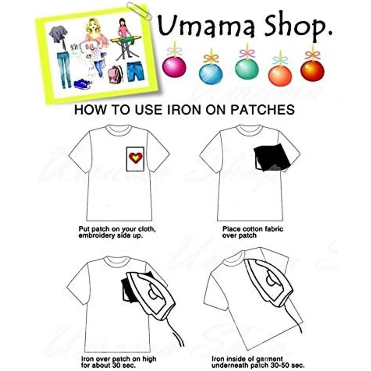 2. Coloca el parche en el lugar correcto de tu paño como quieras decorar. 3. Protege la superficie del parche cubriéndola con un paño húmedo o un paño fino y planchar a alta temperatura, luego presiona la plancha sobre el parche durante 1015 segundos aproximadamente 23 veces. 4. Durante mucho tiempo, el uso debe repetirse en el paso 3 en la parte posterior de tu tela. 5. Espera hasta que se enfríe y comprueba si hay una esquina de cada parche y alrededor del borde del parche que ya se sella. Si aún no está completo, repite en el paso 3 y el paso 4. Este artículo