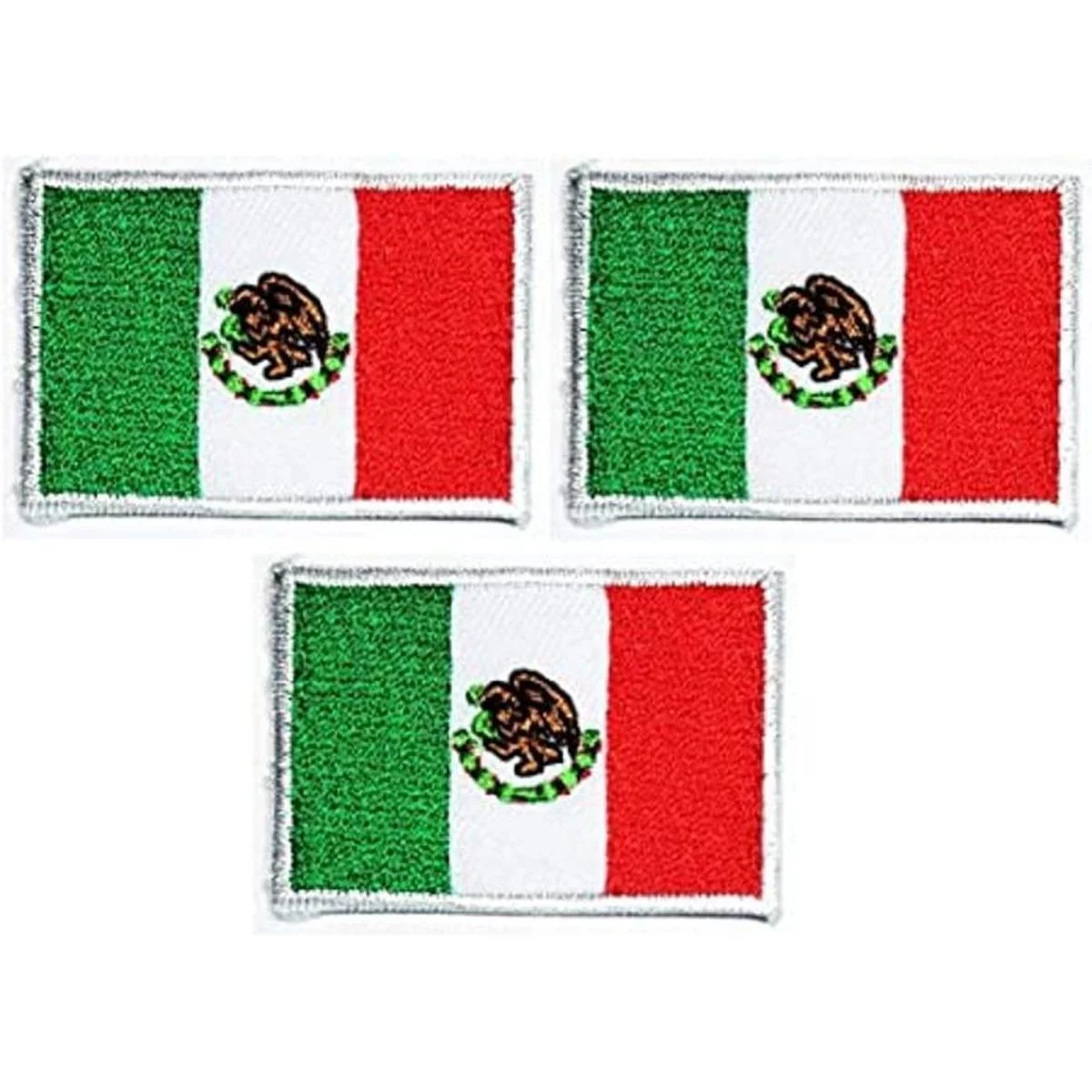 Umama Patch Set de 3 Mini Bandera 1.2 X 1.7 Parche bordado Bandera de México Militar Tactical México Emblema Uniforme Coser Hierro en Parches Ropa Vestido Planta Sombrero Jeans Coser Aplique DIY Accesorio