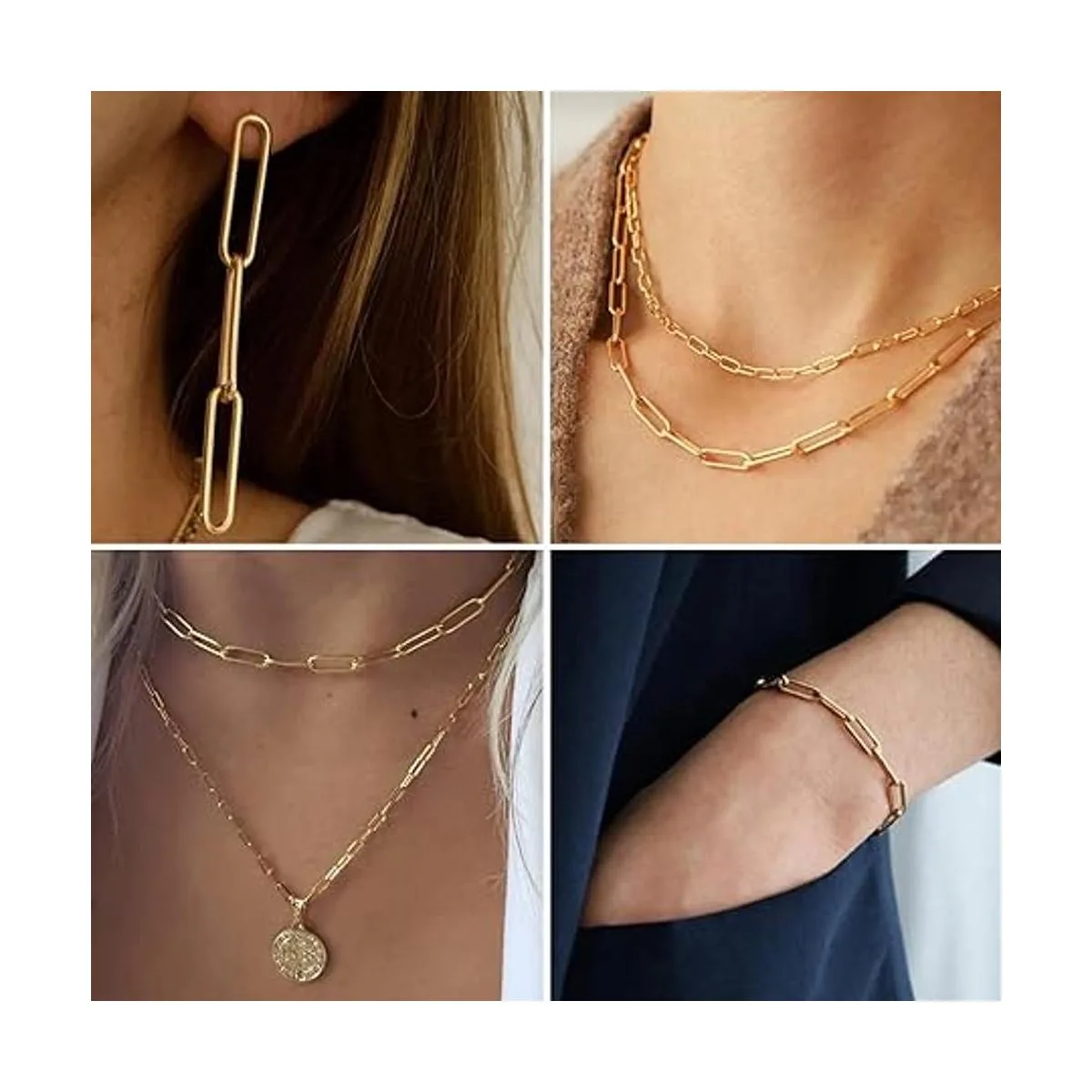 Múltiples usos: las cadenas de joyería a granel son perfectas para diferentes propósitos, combinadas con anillos de salto y cierres, puedes hacer las cadenas en cualquier estilo de collar, pulsera, tobillera, cadena de cintura, cadena de capas, joyería corporal, y puedes añadir cualquier colgante o dije para hacer tus propias cadenas personalizadas o cualquier otra artesanía.