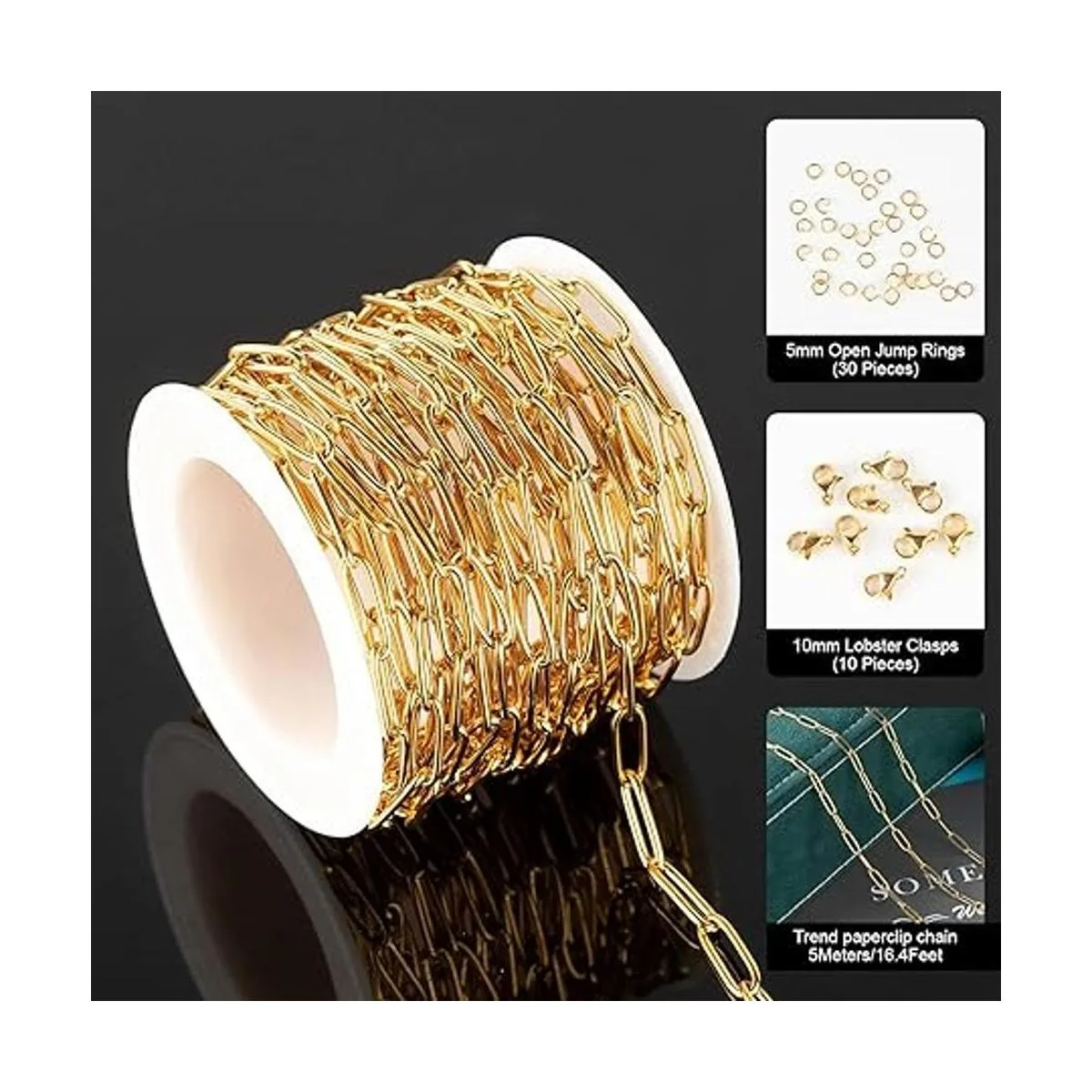 UMAOKANG Cadena de oro de 16.4 pies con clip ovalado de acero inoxidable, cadena de eslabones a granel con cierres de langosta y anillos de salto para mujer, pulseras de bricolaje para hacer joyas