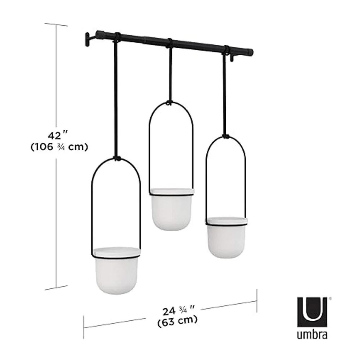 Umbra Triflora Maceta colgante para ventana, jardín de hierbas interior, blanconegro, triple