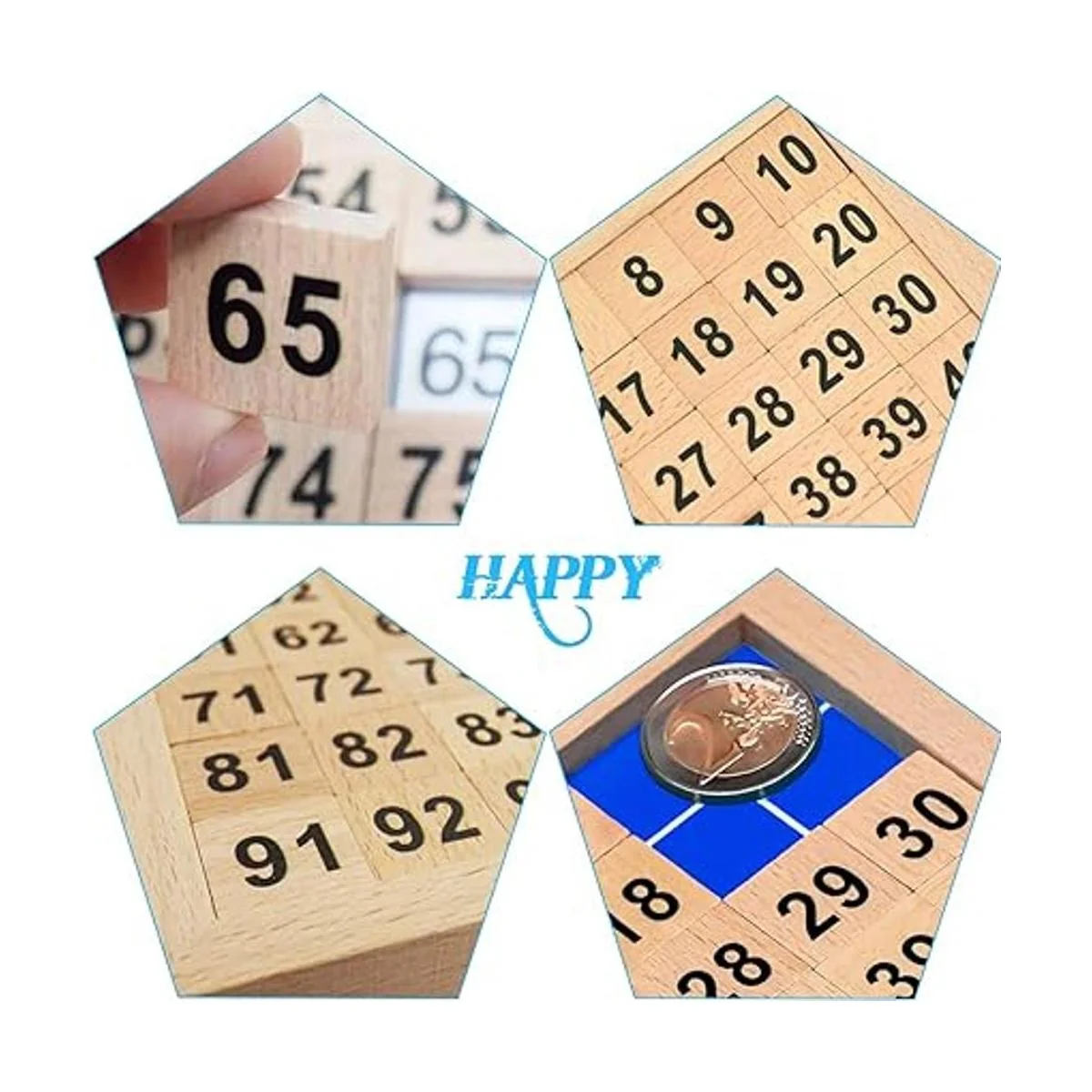 El paquete incluye: una tabla de 100 cuadrículas, una tabla de control, 1 100 tarjetas de número de madera y una bolsa de almacenamiento de tela.