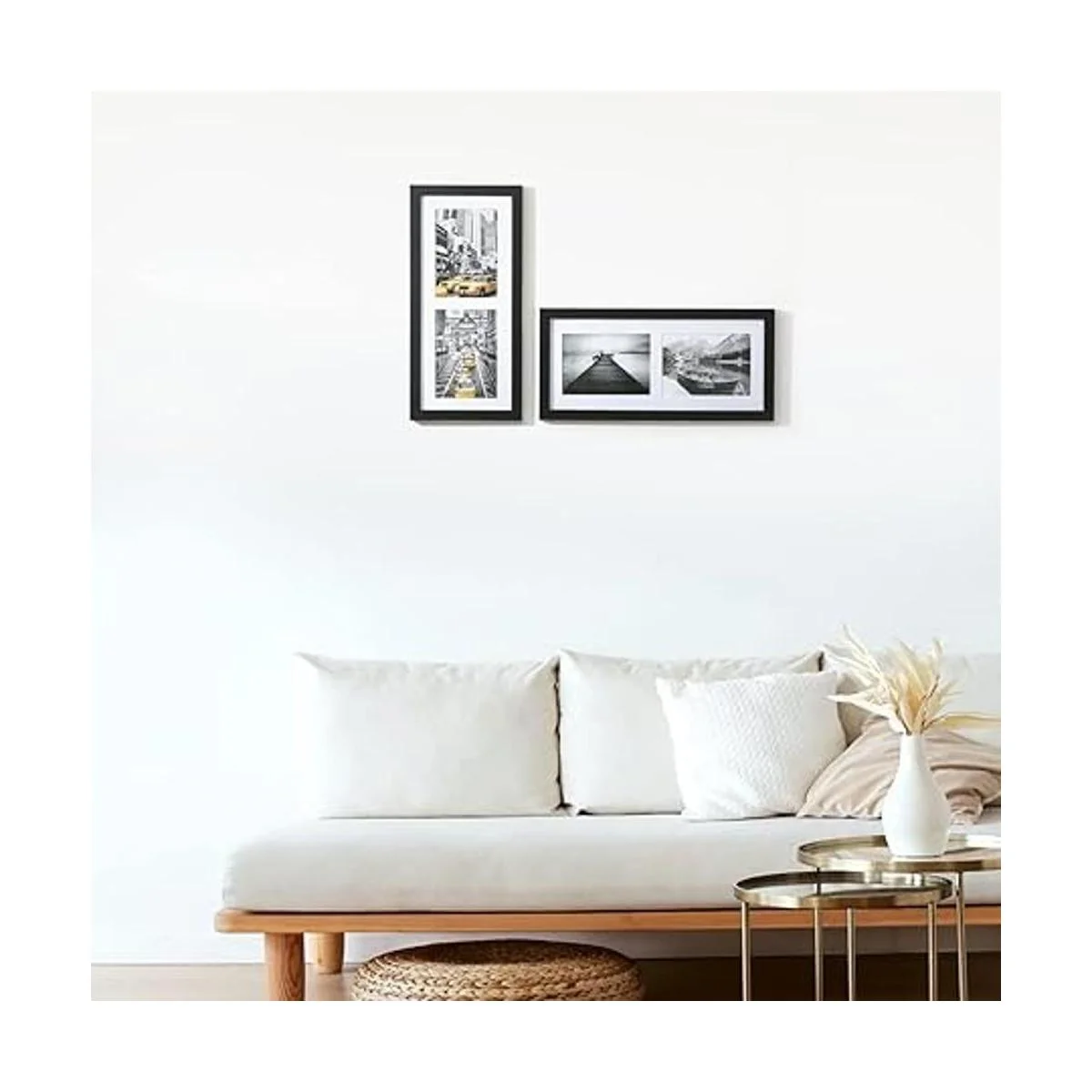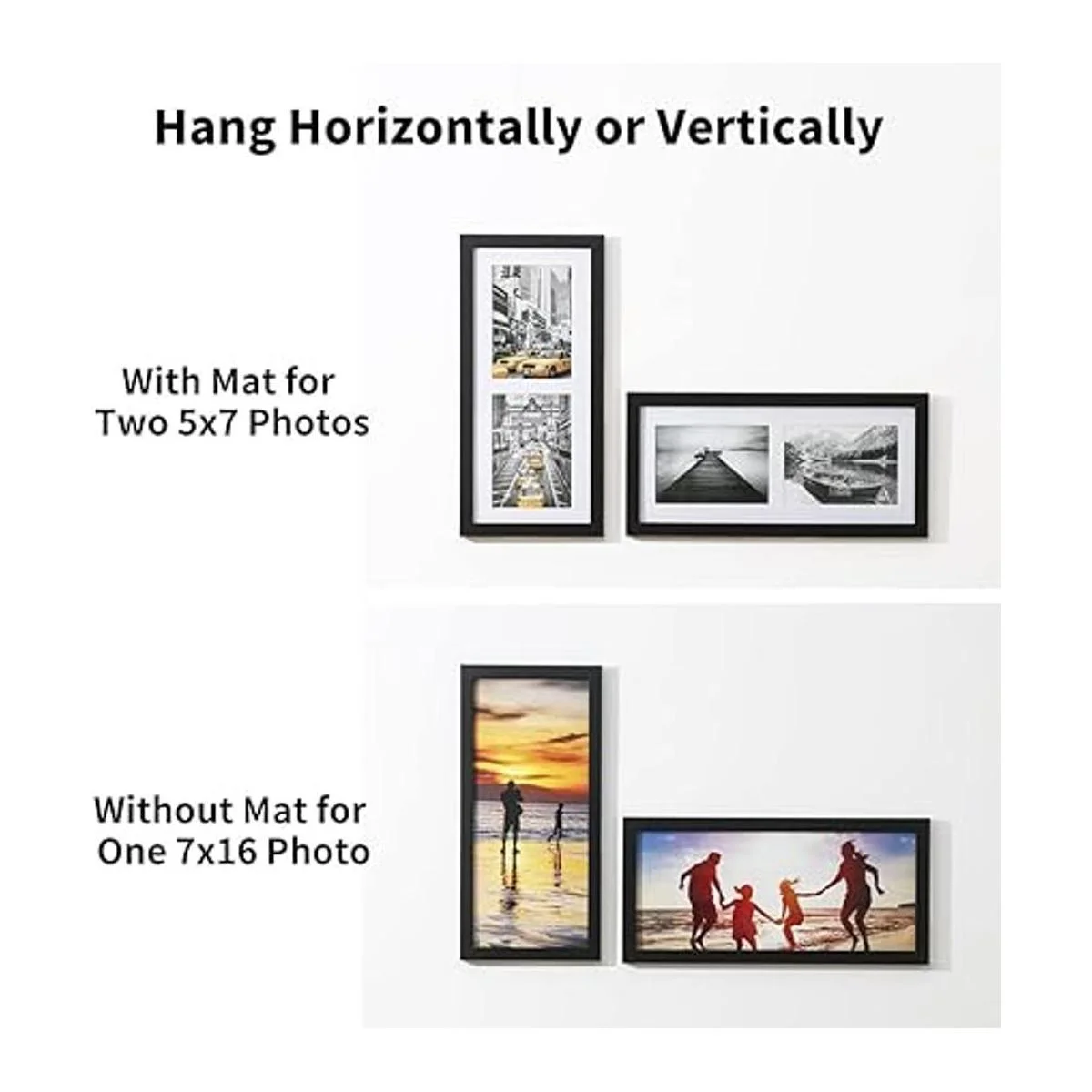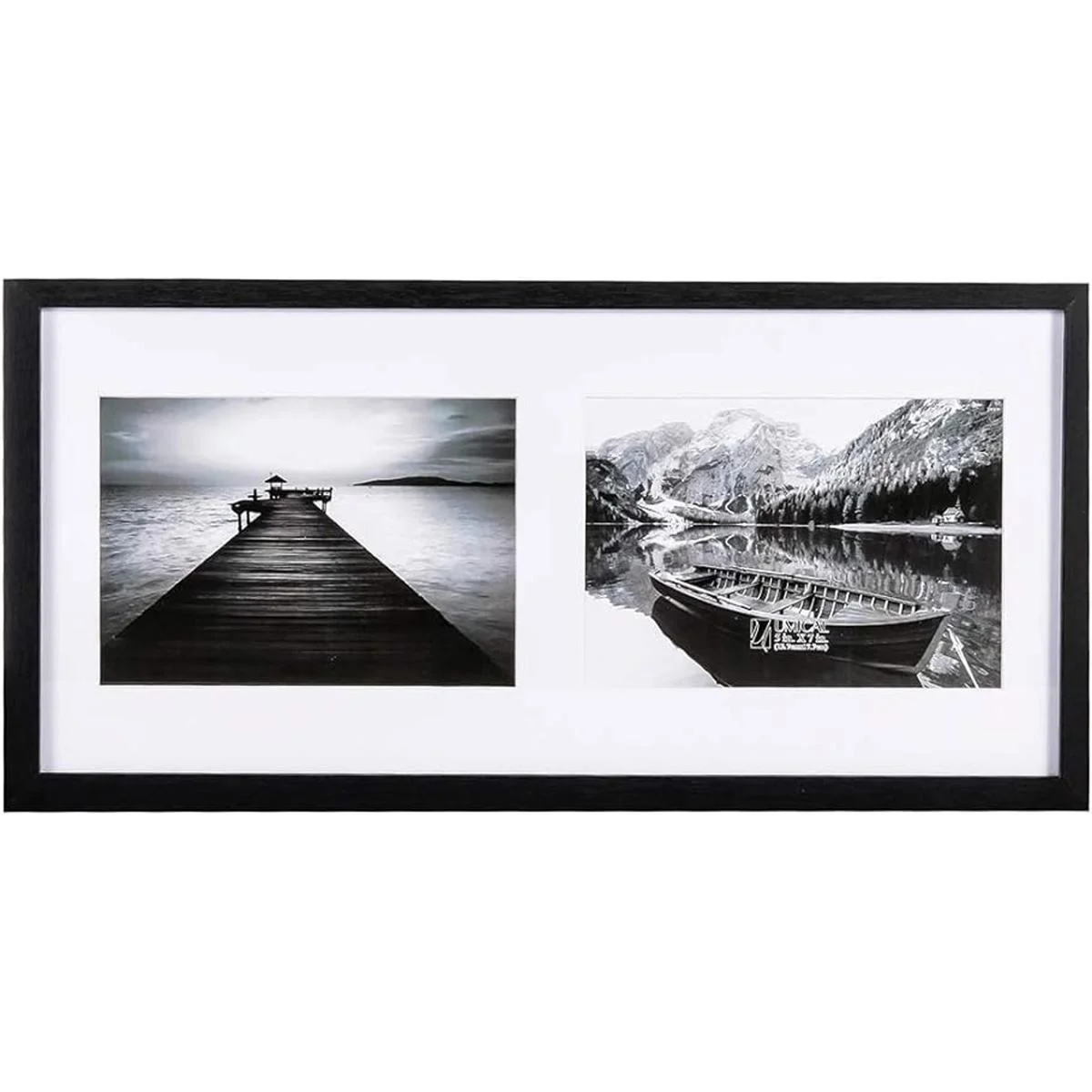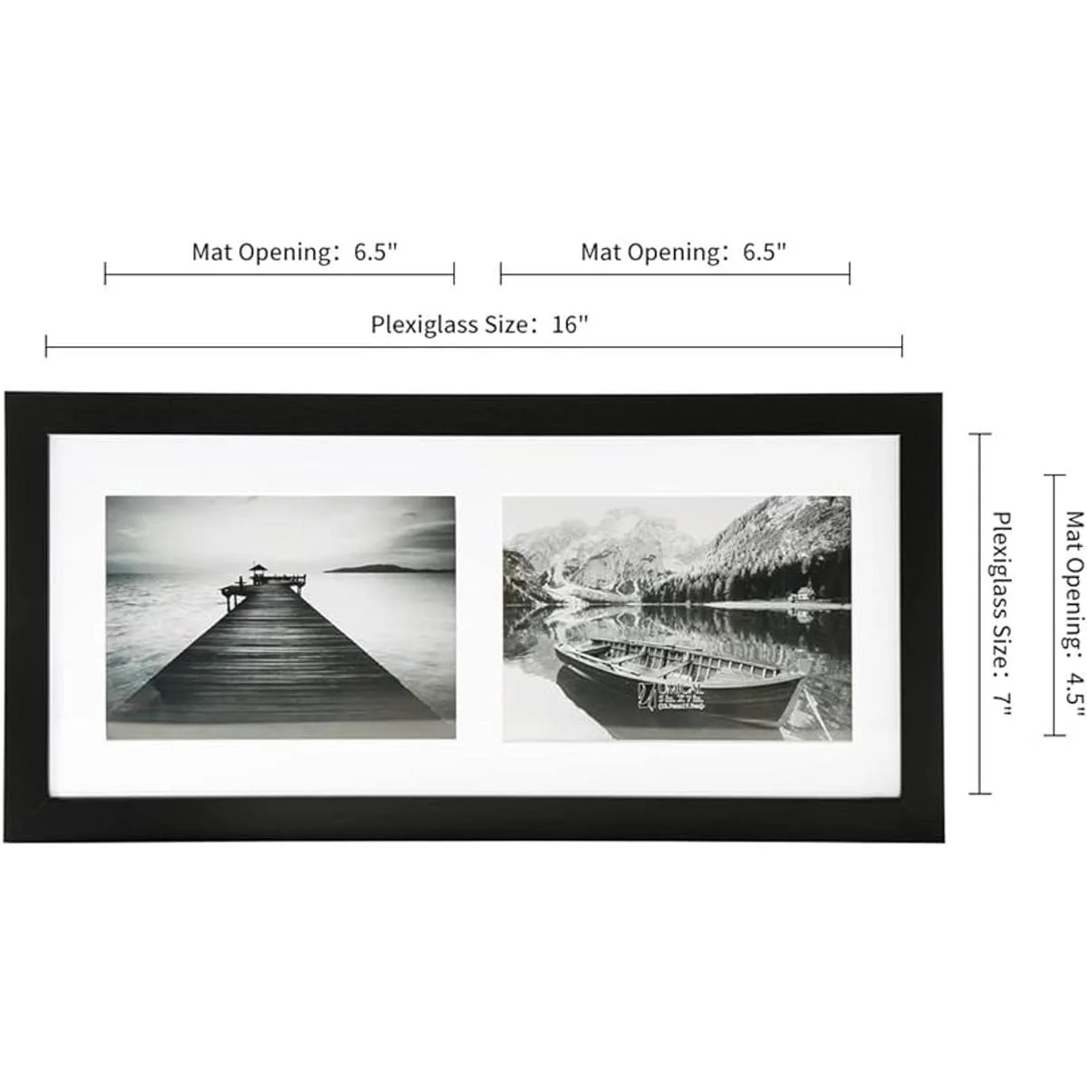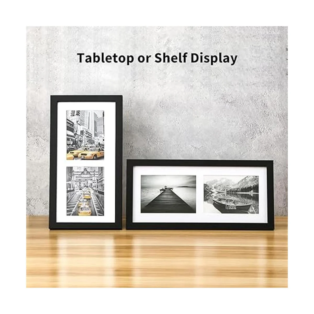 UMICAL Marco de fotos de 5 x 7 pulgadas, 2 aperturas, estilo galería, marco de fotos de paisaje de madera negra con plexiglás HD para soporte de mesa y montaje en pared